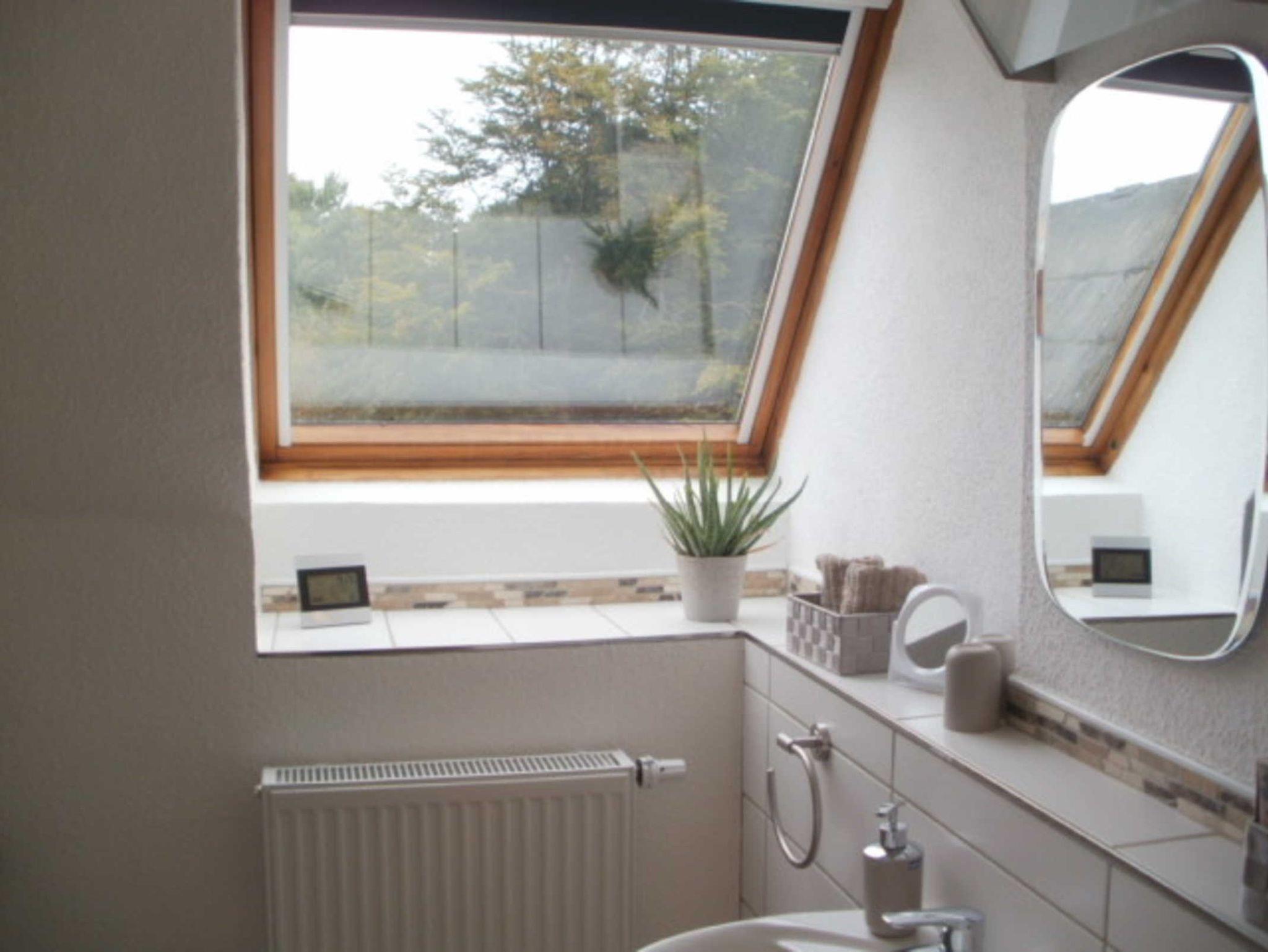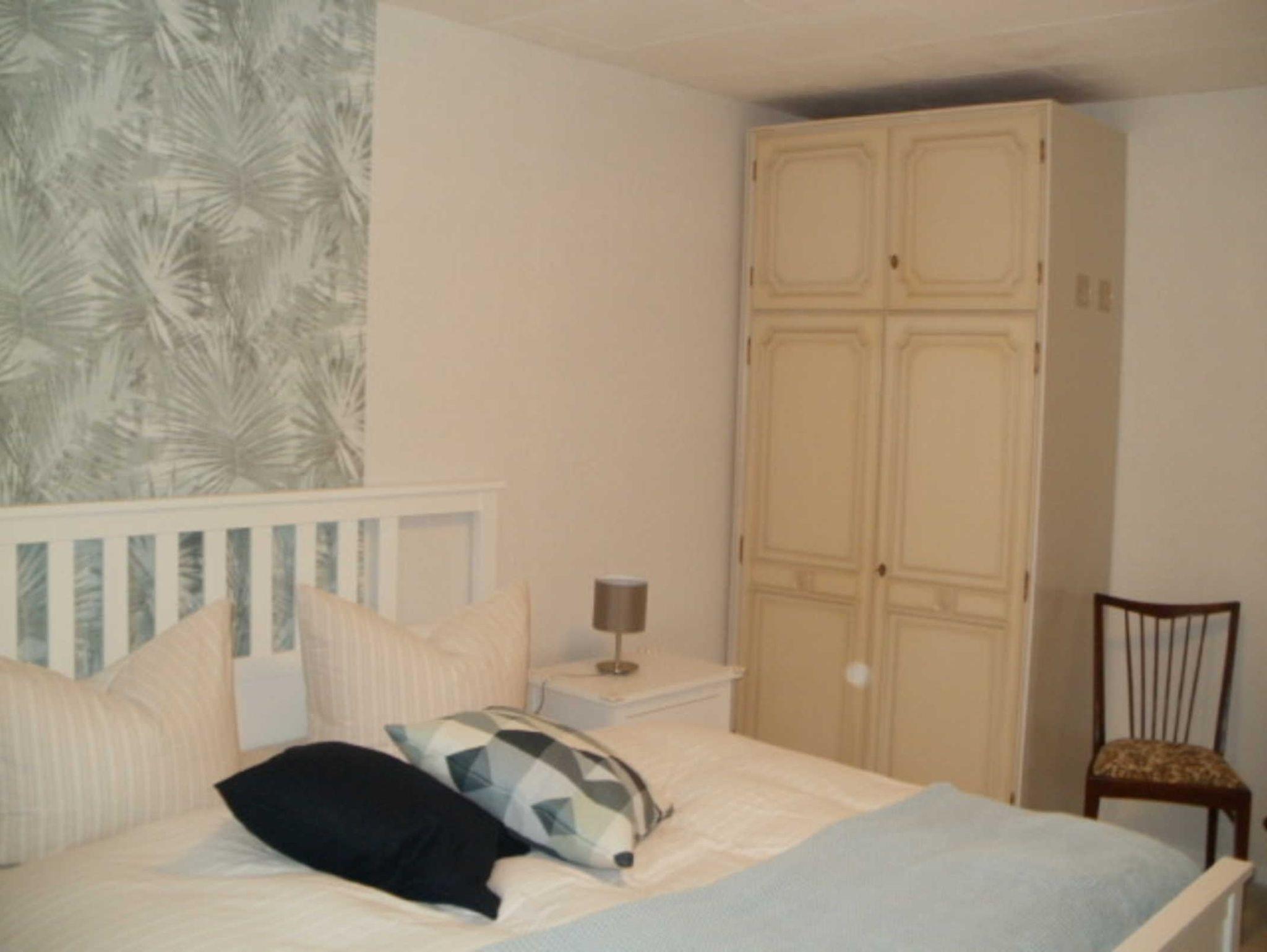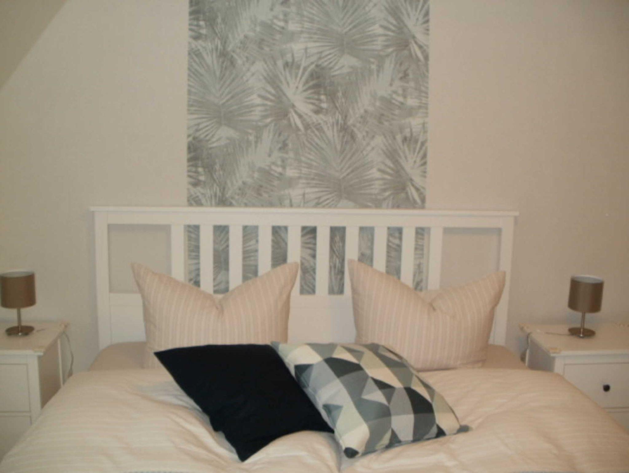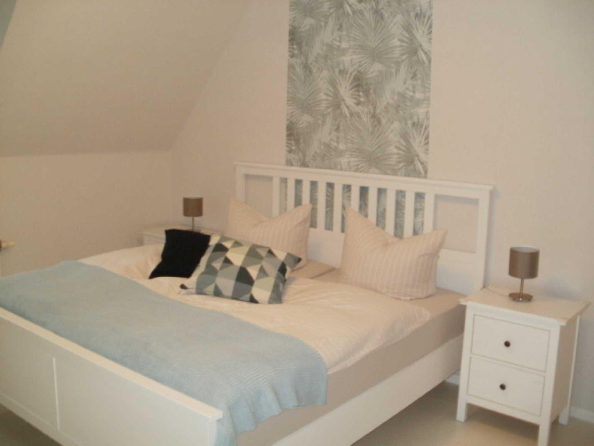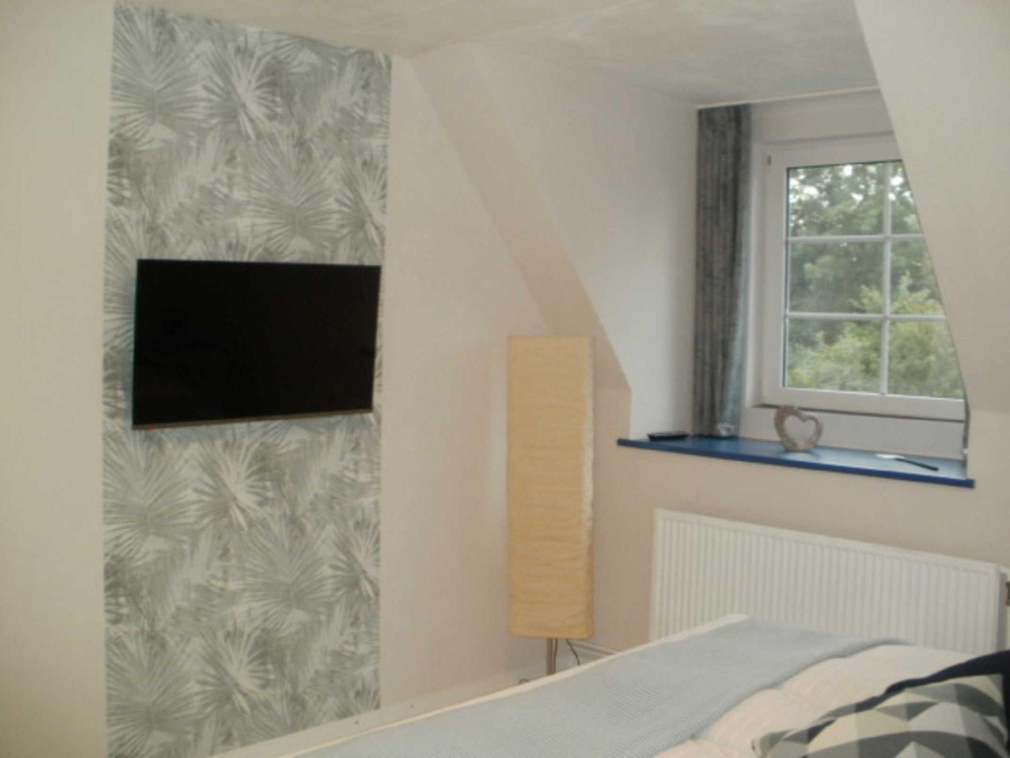 Die gemütliche Wohnung liegt im Obergeschoss eines Mehrfamilienhauses: das Schlafzimmer ist mit einem Doppelbett (1,80 x 2,00 m), einem TV, einem Sessel sowie einem Kleiderschrank ausgestattet. Das Bad verfügt über Dusche, Waschbecken und Toilette und ist durch ein großes Dachfenster schön hell. Die kleine Küche mit Küchenzeile und kleinem Esstisch hat eine Grundausstattung, mit der man sich gut selber verpflegen kann: zwei Platten Induktionsfeld, Mikrowelle, Kühlschrank, Kaffeemaschine, Kaffeepadmaschine und Wasserkocher stehen bereit. In der Küche steht außerdem ein Sofa, das auch für eine dritte Person aufgebettet werden kann.