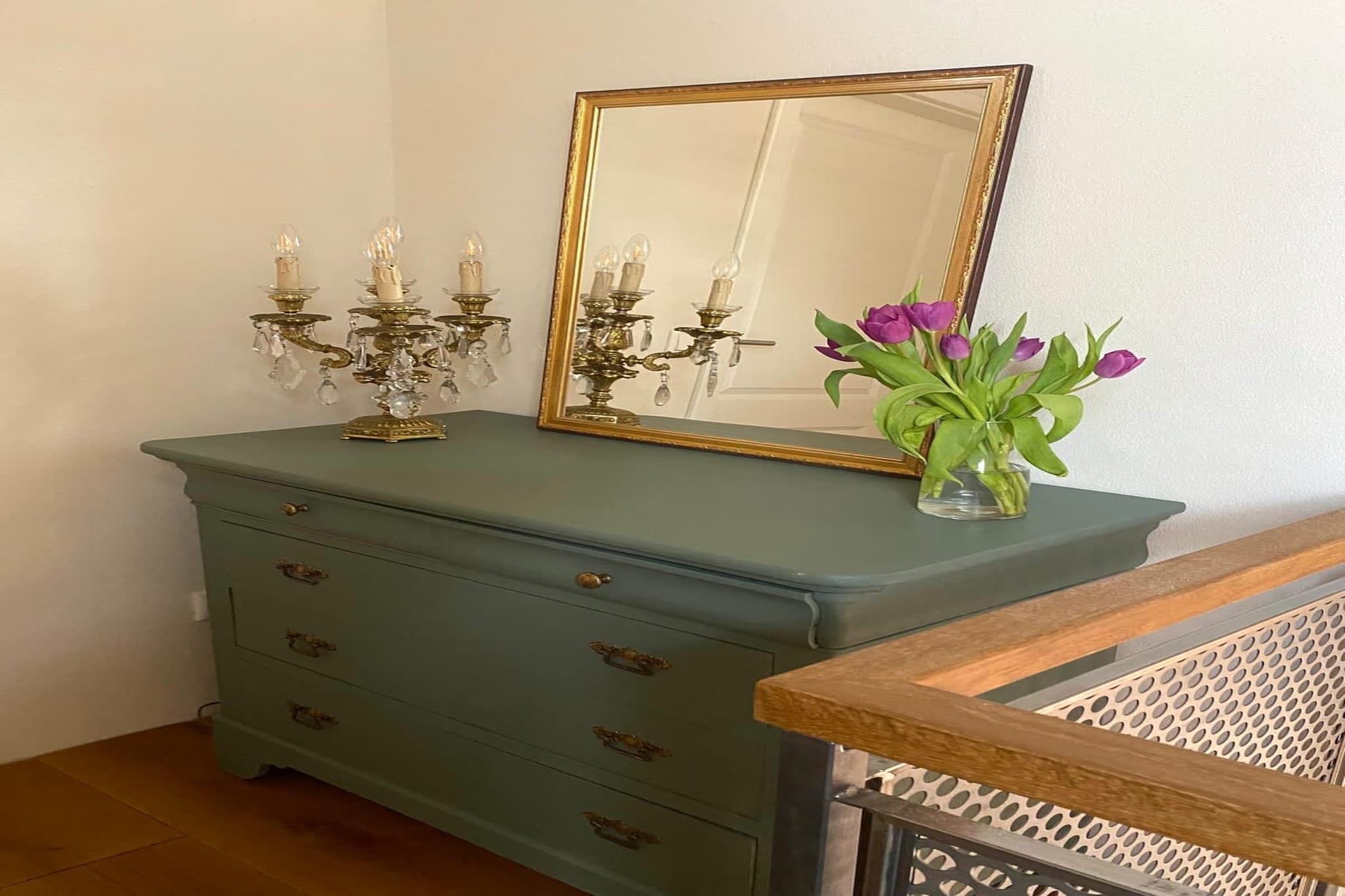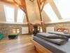 Denne exceptionelle ferielejlighed tilbyder luksuriøs boligkomfort i to etager og masser af plads til familier eller små grupper. I stueetagen finder I et rummeligt, fuldt udstyret køkken med udsigt til hestene i gården. Den 7 meter høje stue og spisestue imponerer med et elegant spisebord under en fantastisk loftslampe bestående af over 99 glaskugler. Fire designerlænestole og en udtrækssofa (1,60 x 2 m) foran den stilfulde gaspejs sikrer hyggelige aftener. Et lille badeværelse med bruseniche og eksklusive fliser fuldender underetagen. På galleriniveau er der et stort soveværelse med en dobbeltseng (2 x 2 m), en massagestol og en blød sofa, der kan laves om til en sovesofa. Et andet soveværelse har to dobbeltsenge (1,60 x 2 m og 1,60 x 1,90 m). Det lyse badeværelse er udstyret med en rummelig bruseniche og et spabad til to personer – ideelt til afslappende timer. Et højdepunkt er en brændefyret tøndesauna i gården. Uanset om du er efter en vandretur i det saksiske Schweiz eller en slentretur gennem Dresden, finder du ren afslapning her. Bemærk: Gården og udendørsfaciliteterne er stadig under opførelse. Sengelinned, håndklæder, hunde, spabad og sauna er kun tilgængelige efter anmodning og mod et gebyr. Poolen nævnt i beskrivelsen er en naturlig dam, og vandkvaliteten kan være begrænset om sommeren.