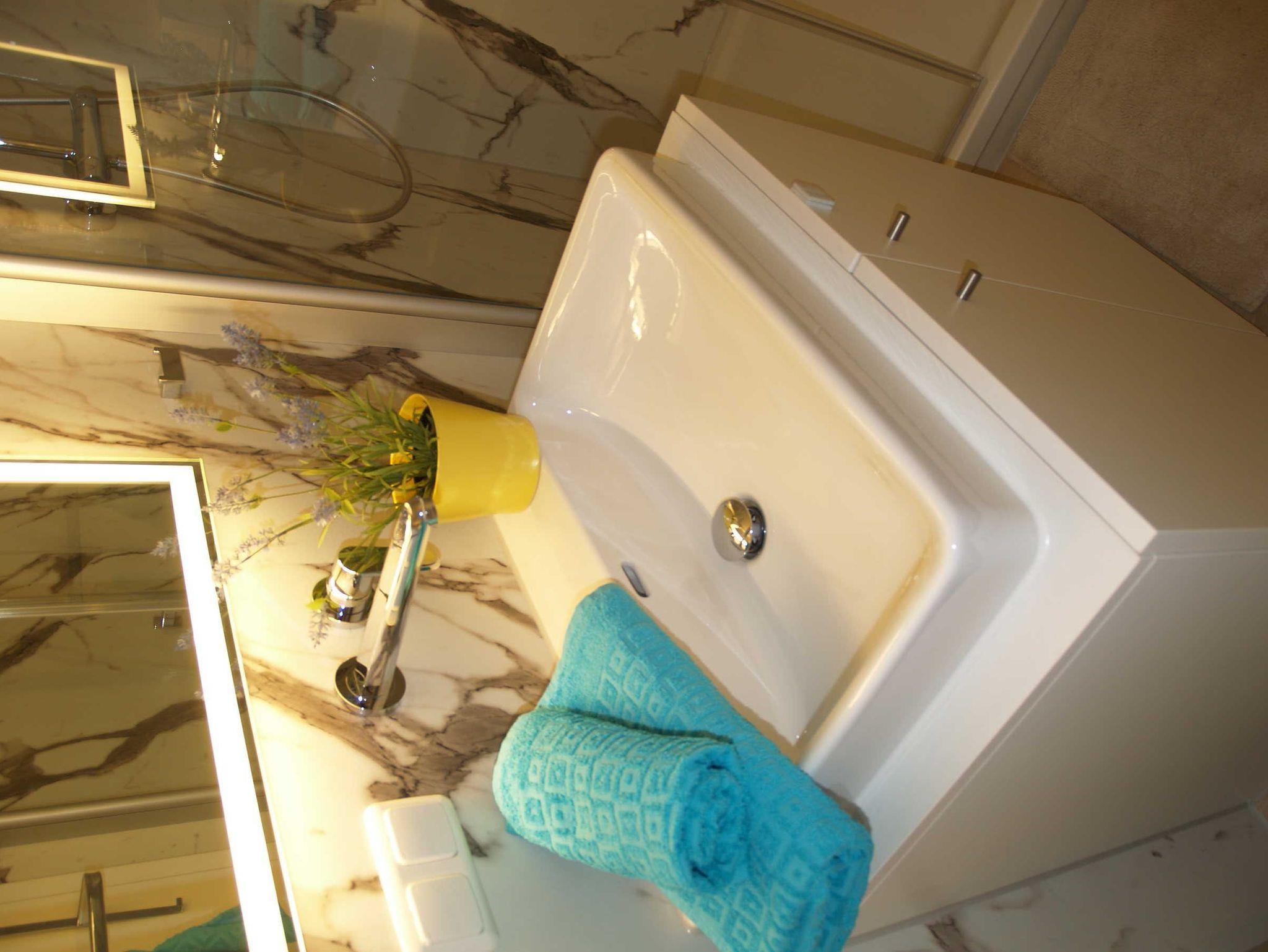 Geräumige Dusche, WC, Haartrockner, Kosmetikspiegel