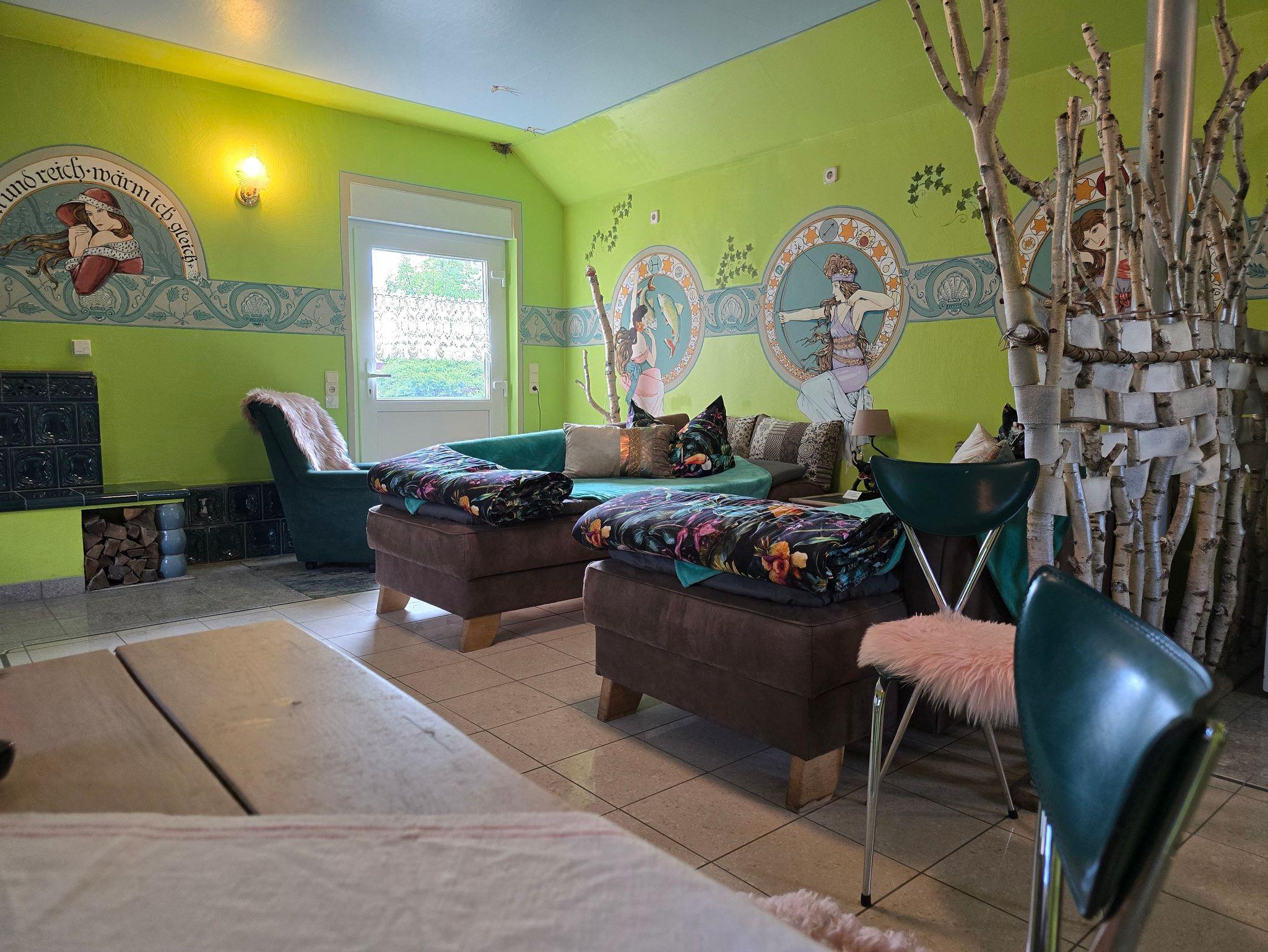 Im Herzen der Seestadt Großräschen finden sie unser Kleinod Bett & Bike Natur mit 30m² für zwei Personen. Nicht nur der alte Kaminofen und die schönen Wandmalereien im Stil Mucha bieten ein besonderes Übernachtungsquartier. Ein kleines Bad mit Dusche und WC runden das Quartier ab. Der Mix zwischen Alt und Modern ergibt ein besonders, romantisches Flair.