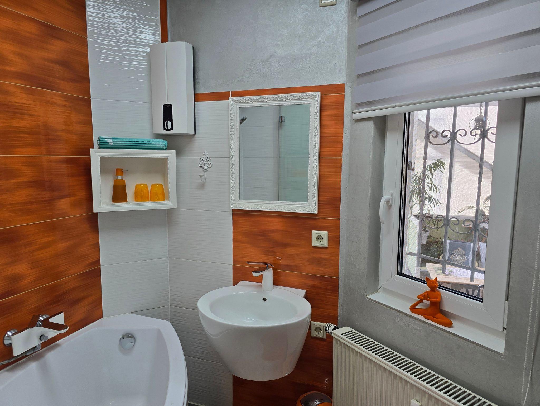 Ein modernes Bad und ein Flur runden das Apartment ab. Eine gemütliche Terrasse auf der 1. Ebene steht unseren Gästen für ein Verweilen im Freien zur Verfügung. Alle Räume im Haus sind Nichtraucherzimmer.