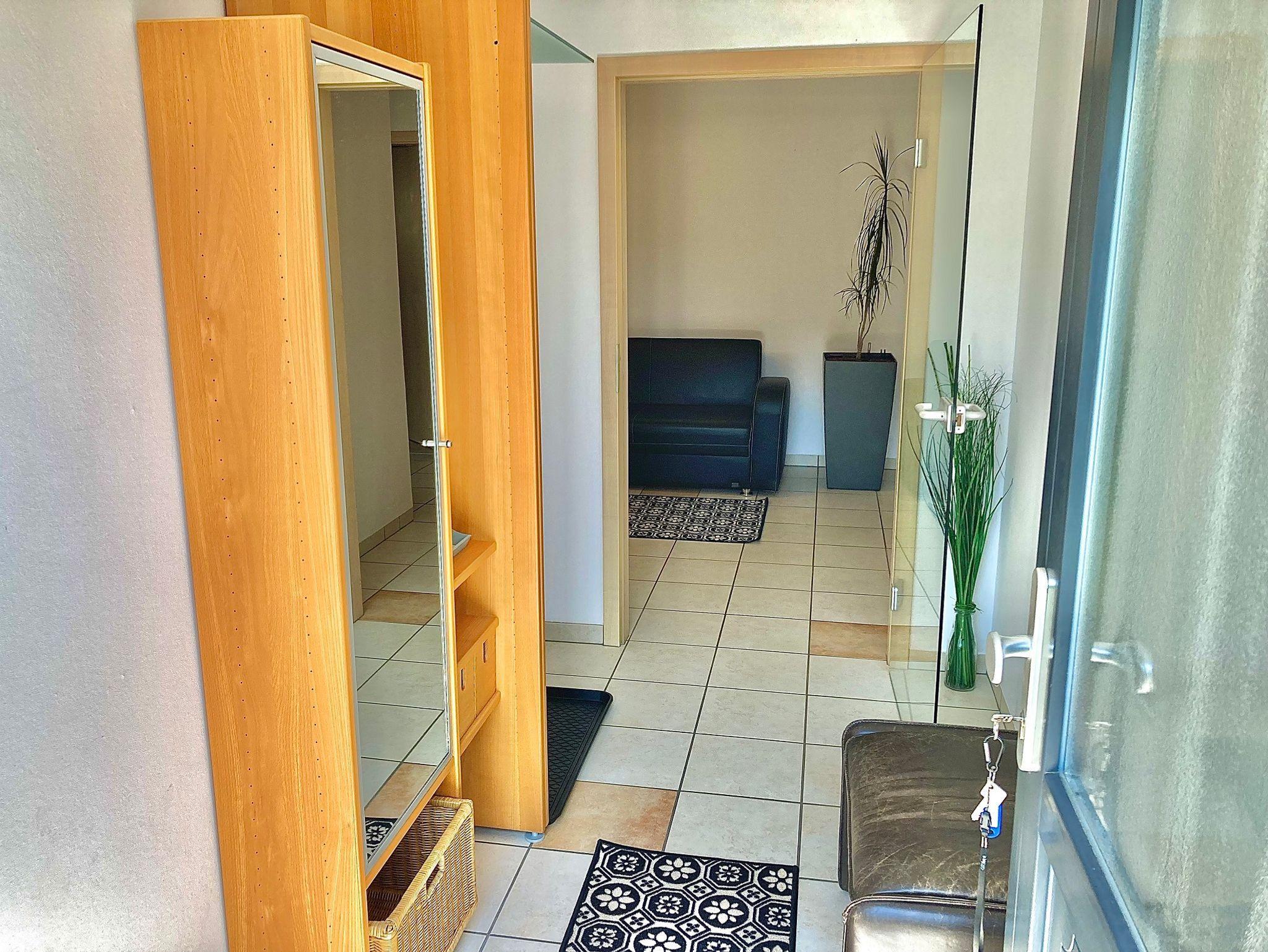 - Eingangsbereich/Windfang mit Garderobe, Spiegel und Sitzmöglichkeit