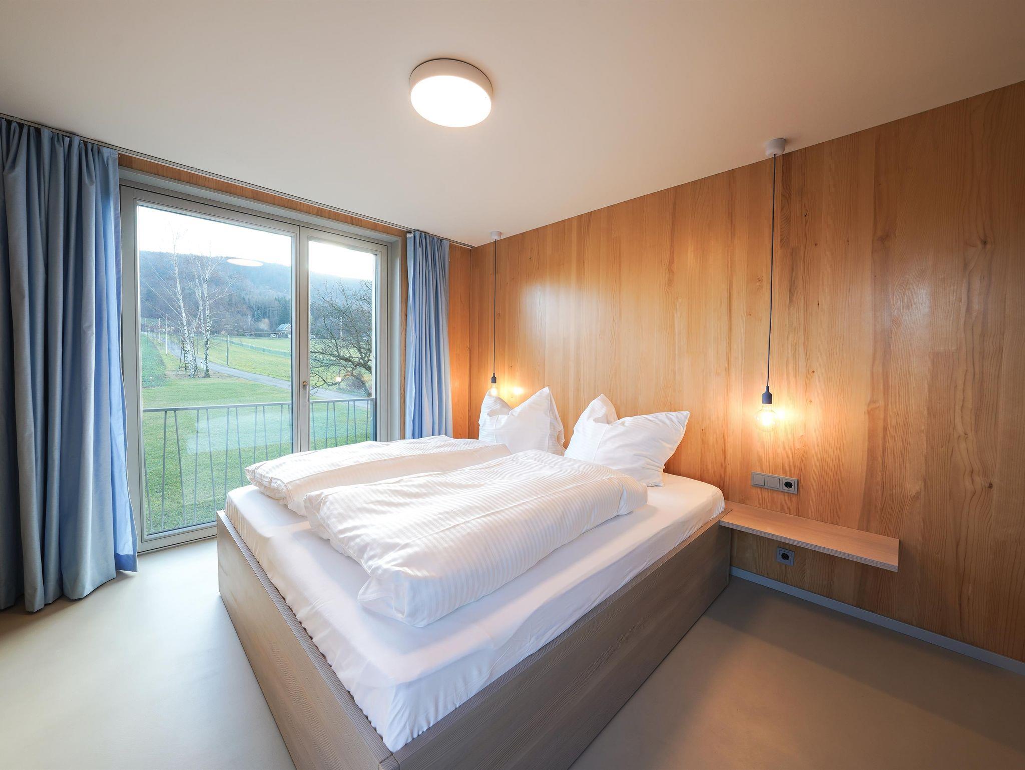 Auch von den vier Schlafzimmern aus können Sie den Bergblick auf die Lausche und die Umgebung genießen. Zwei Stilvolle Bäder und ein Gäste WC verbinden Design und Funktionalität.