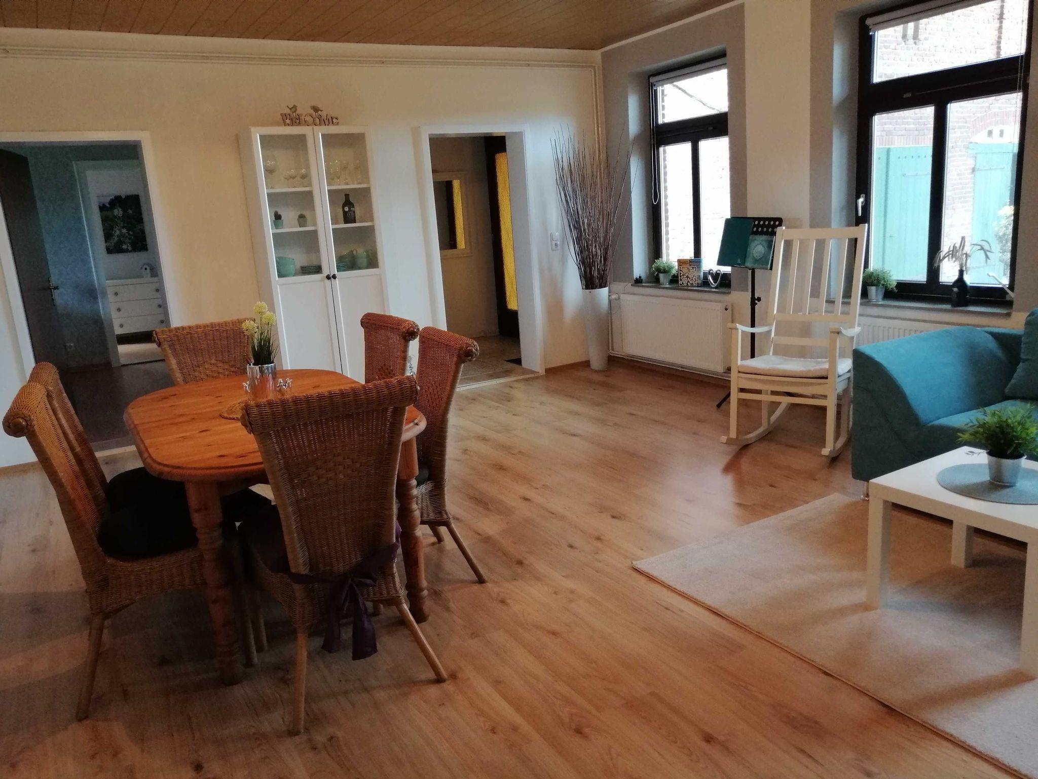Wir heißen Sie herzlich willkommen in unserer Ferienwohnung Landoase: Die Ferienwohnung befindet sich auf einem schönen und ruhig gelegenen Resthof/ehemaliger Bauernhof in der Ortschaft Großsolt, mitten im Grünen Binnenland von Schleswig-Holstein. Die Wohnung verfügt über einen eigenen Eingang, ist 100 qm groß und bietet Platz für bis zu sechs Personen. Es gibt ein Schlafzimmer mit Boxspringbett (1,80 x 2,00m) und TV sowie zwei weitere Zimmer mit je einem ausziehbaren Bett (0,80 x 2,00m, bzw. 1,60 x 2,00m) - eines davon mit TV. Weiter gibt es ein großes Wohnzimmer mit Essbereich, eine große Küche, ein Duschbad, eine überdachte Terrasse und eine offene Terrasse. Handtücher bitte mitbringen.