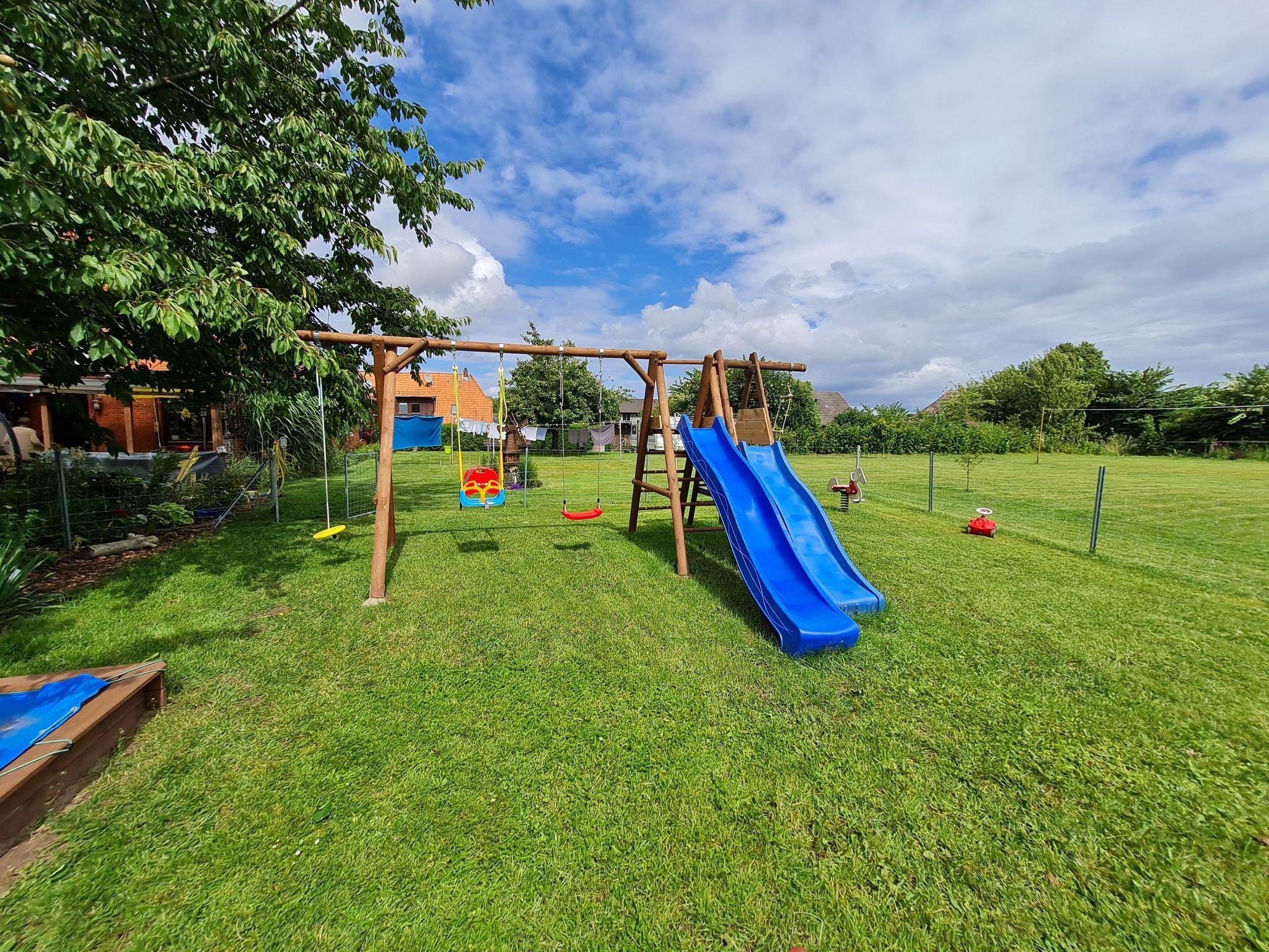 Directly in front of the house there is a west-facing terrace with a barbecue and if you walk around the house there is a small fenced-in playground with seating, which is used by us and can be shared by the guests.