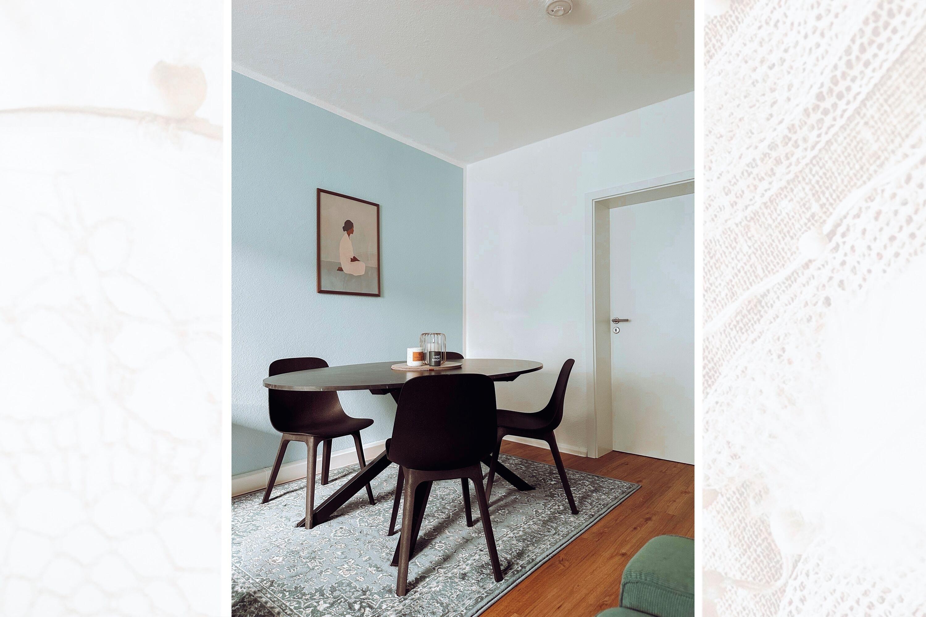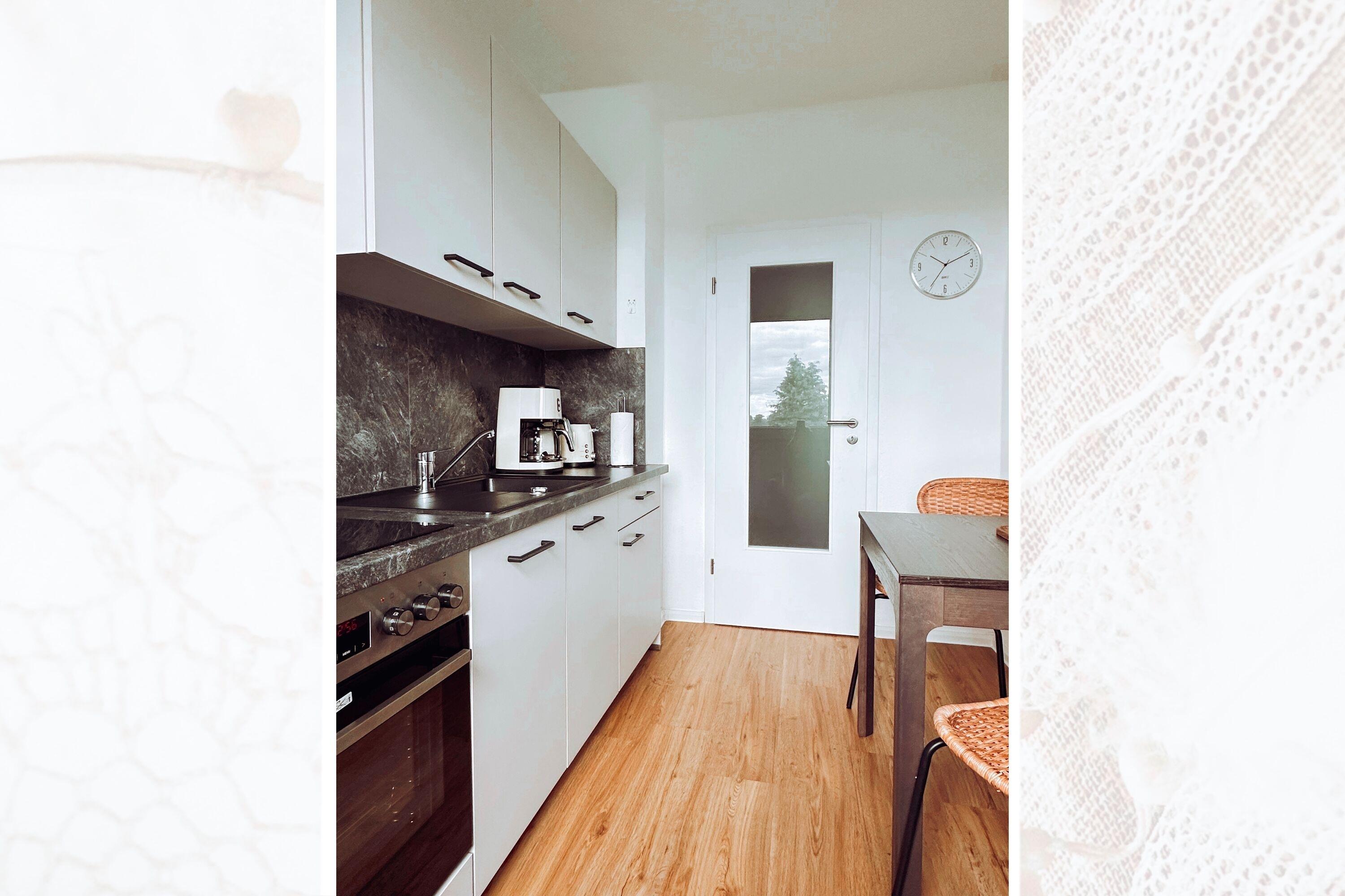 Die Ausstattung des Apartments umfasst ein gemütlichen Wohnzimmer mit einem großen Esstisch für gemütliche Abende, einen Flachbild-TV, sowie einen Internetzugang via WLAN. Die Küche ist mit einer Kaffeemaschine (Filter), einem Toaster, einem Wasserkocher und einer Spülmaschine ausgestattet. Für längere Aufenthalte befinden sich auch ein Trockner und eine Waschmaschine in der Ferienunterkunft.