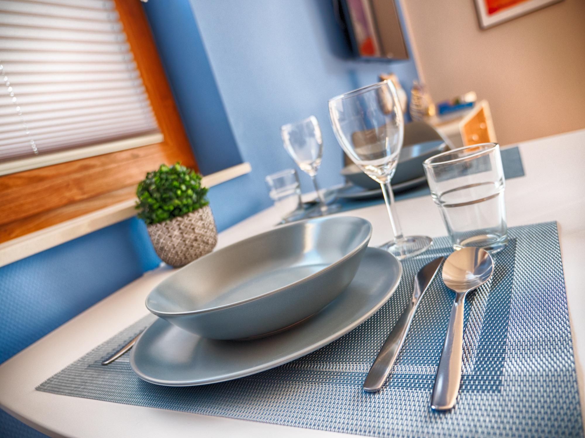 In jedem Appartement können Sie Ihre eigene vollumfängliche Küchenzeile nutzen. Ausgestatt mit Geschirrspüler, Koch-Ceranfeld, Backofen, Kaffee-Padmaschine und Kühlschrank (ohne Gefrierfach). Wenn Sie lieber auswärts essen möchten, finden Sie viele Restaurants in der Innenstadt, die ist nur eine Gehminute entfernt.