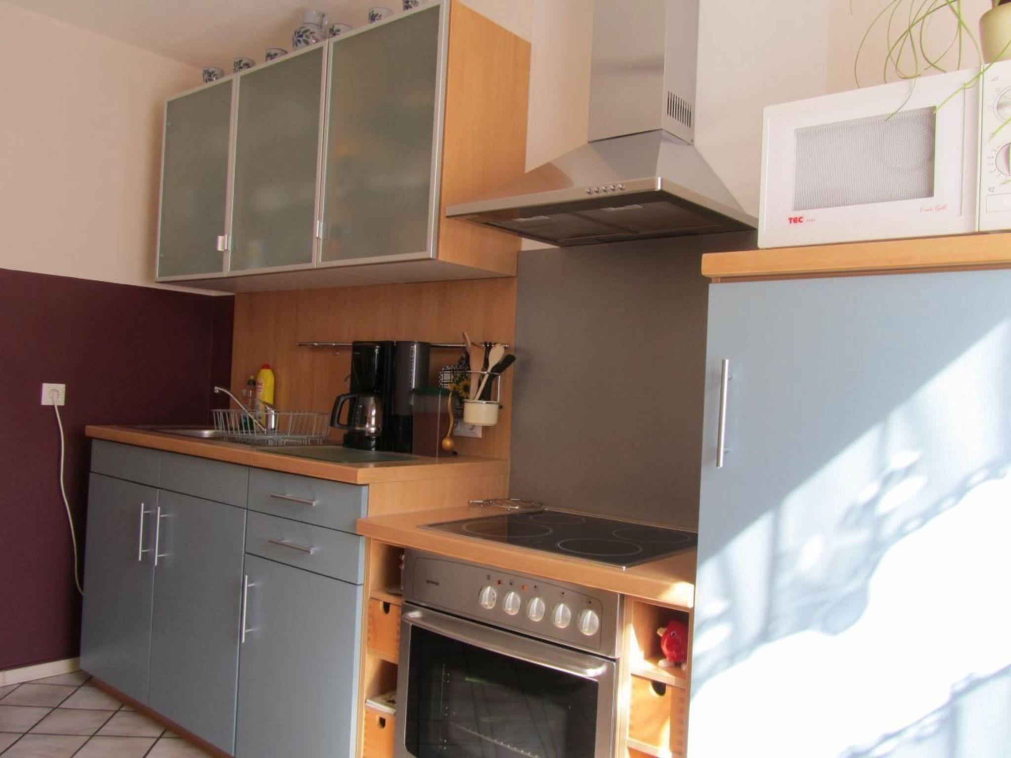 The interior of the 50 m² holiday flat leaves nothing to be desired. With a separate entrance, you enter a cosily furnished home consisting of a fully equipped kitchen with ceramic hob, dishwasher and more, a living room with flat-screen TV, DVD player and an extendable sofa corner, a bedroom that promises darkness for the night and a modern bathroom with walk-in shower and towel dryer.