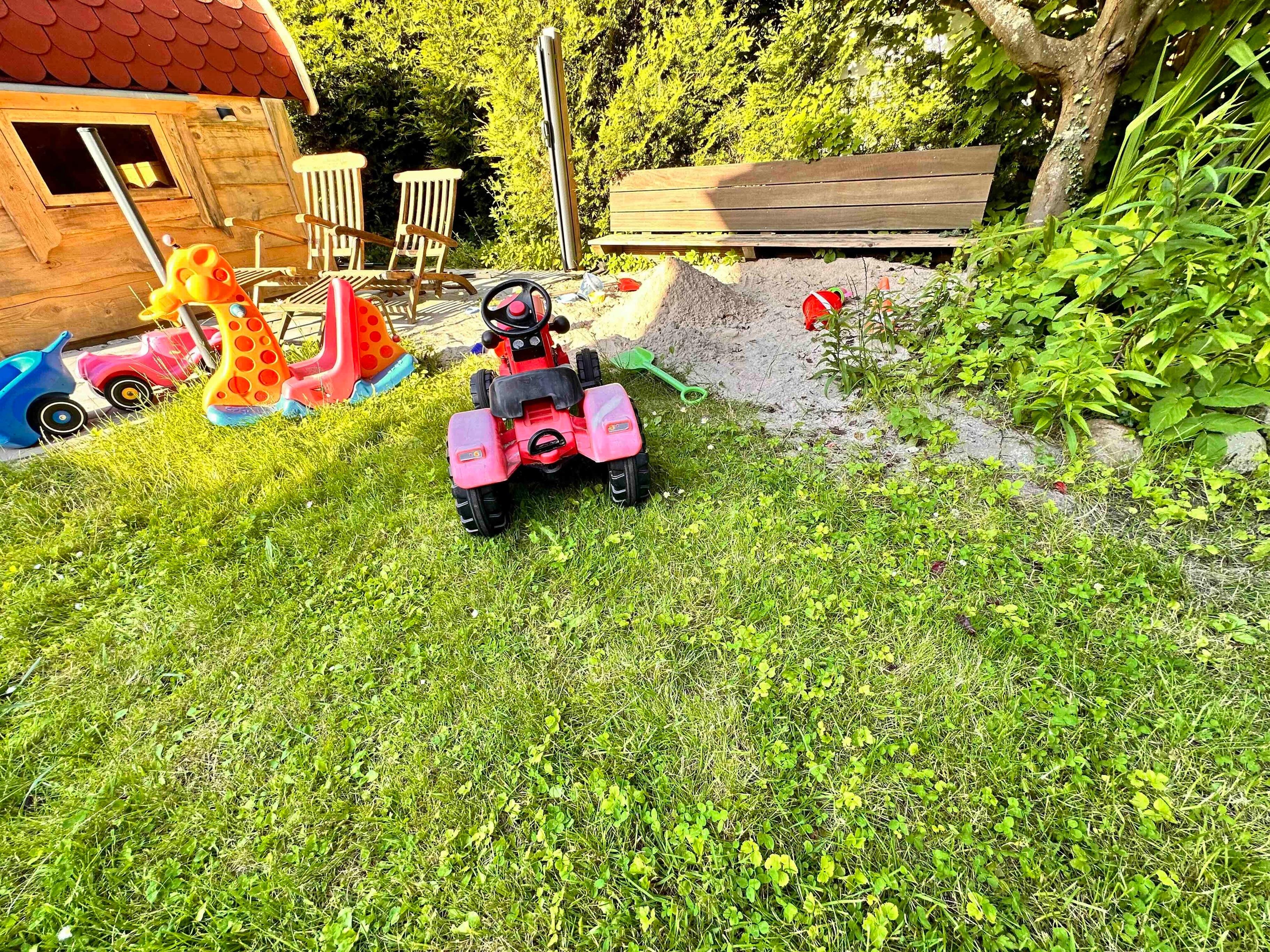 Gerne dürfen Eure kleinen Schätze das Trampolin, die Sandkiste mit Trecker und Anhänger, die Slackline, die Tischtennisplatte und das Spielhaus mit Rutsche auf eigene Gefahr mitbenutzen. Zum chillen für die Kleinen lädt unsere hängende Höhle ein, die zwischen Küche und Esszimmertisch sanft schaukelt. Schnorchel und Flossen liegen für euren Ostseebesuch bereit.