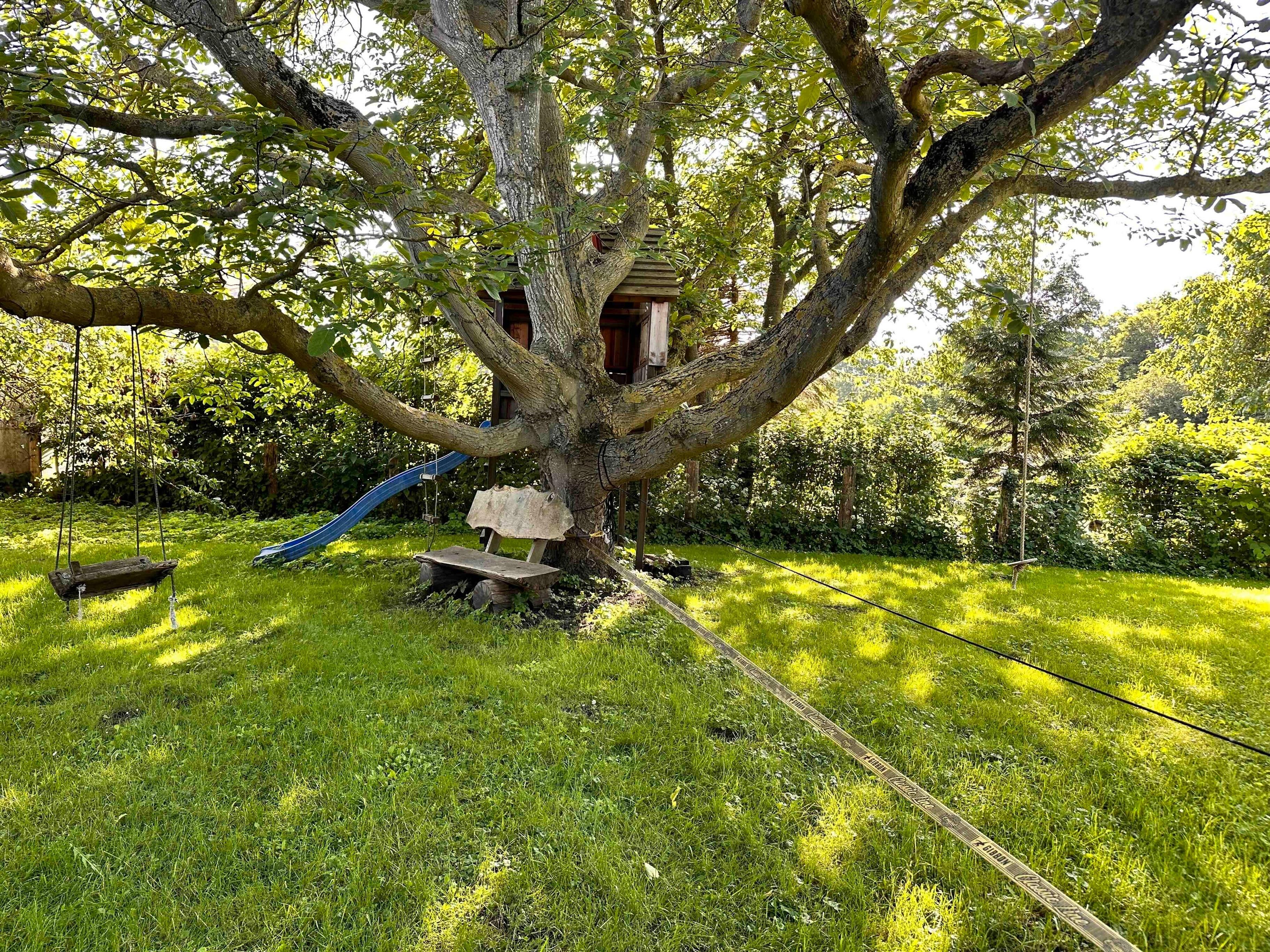 In unserem 3000qm großen Garten mit dem wunderschönen Walnussbaum werdet Ihr Euch sicher wohlfühlen! Für Groß und Klein gibt es viel zu entdecken. In den zwei Hängematten könnt Ihr unter dem Walnussbaum gemütlich lesen, Kaffee trinken, spielen. Wer mutig ist, wird sicher die Gelegenheit nutzen und nachts von der Hängematte aus in den atemberaubenden Nachthimmel schauen, den Uhus lauschen, Fledermäuse und Rehe beobachten, die klare Luft genießen, langsam einschlafen, von den schönen Dingen des Lebens träumen und sich von den Stimmen der Vögel wecken lassen und den Sonnenaufgang beobachten. Die mächtigen Balken im Wohnzimmer ermöglichen aber auch eine Abenteuernacht in den eigenen vier Wänden.
