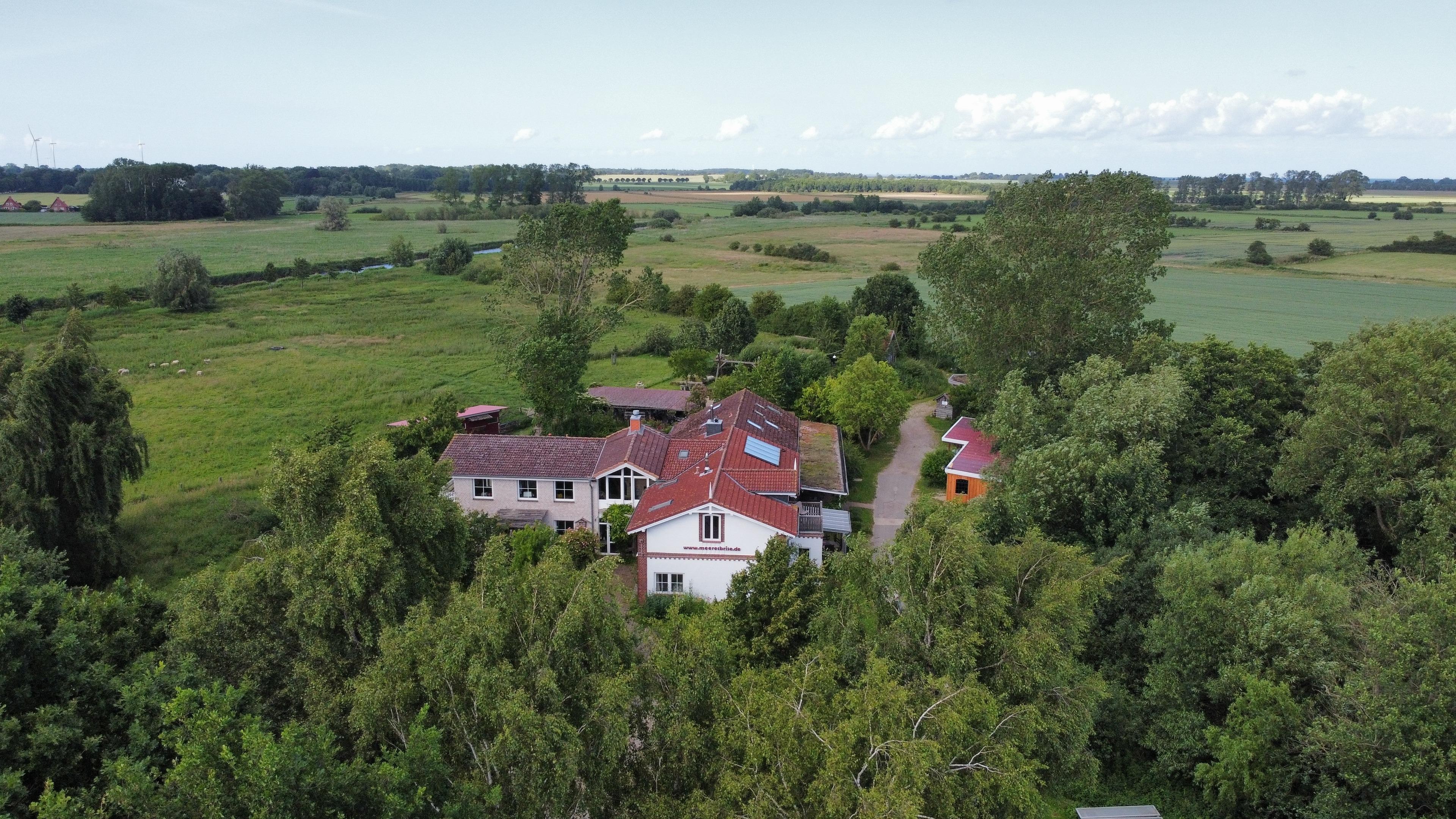 Das Zimmer befindet auf einem Hof außerhalb des Ortes Grube. Im Garten ist eine Lagerfeuerstelle mit tollem Blick zum Sonnenuntergang und eine Outdoor-Küche.