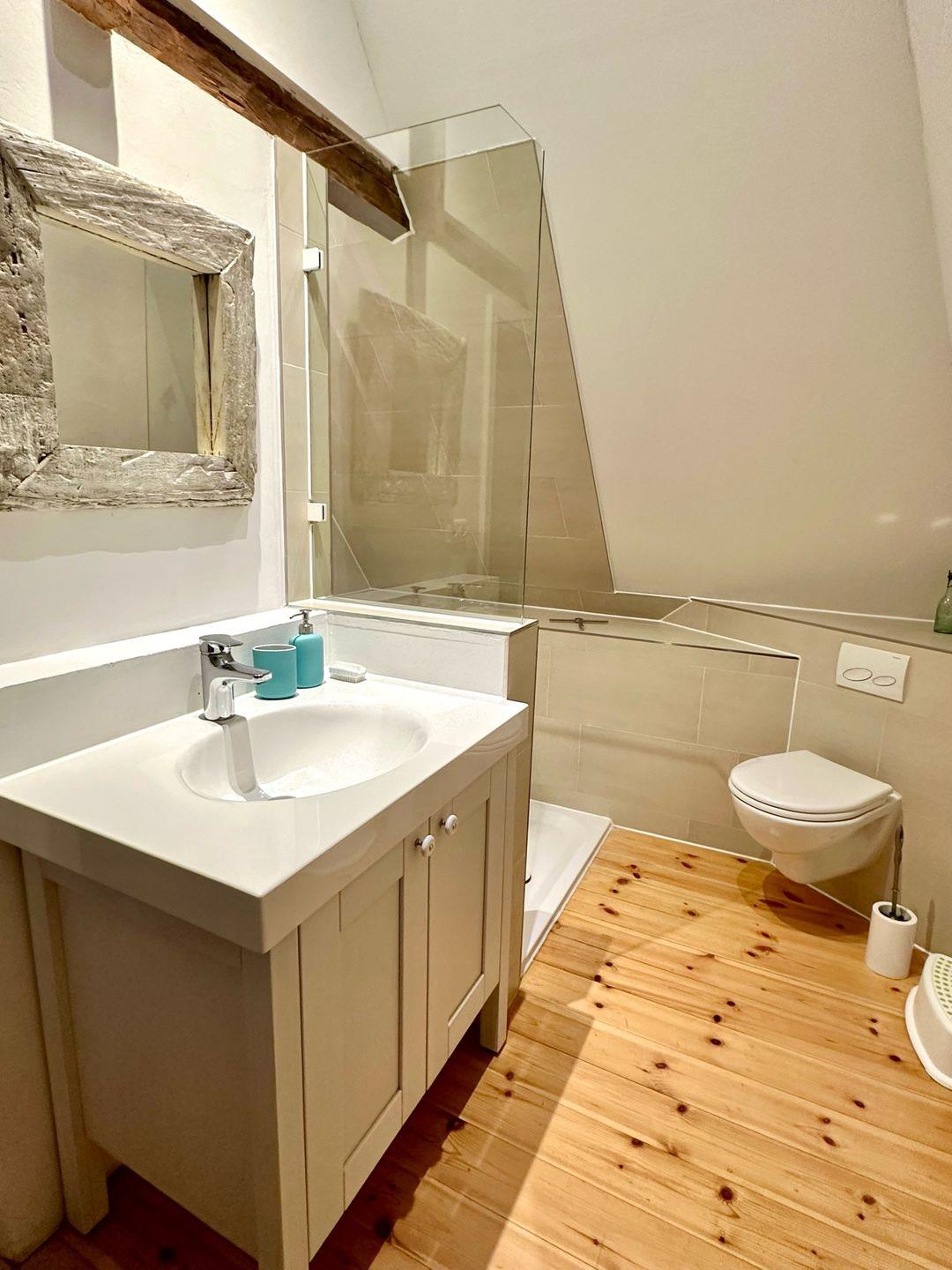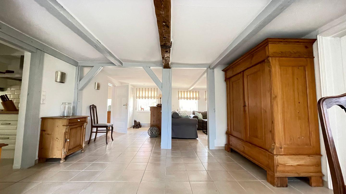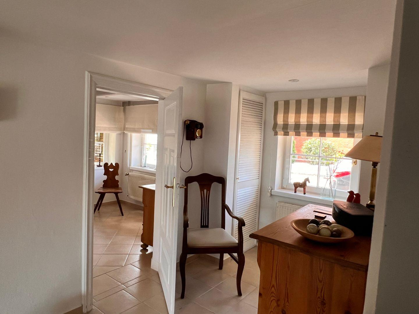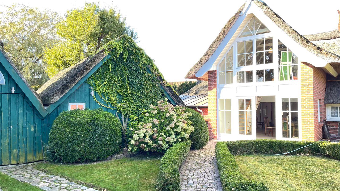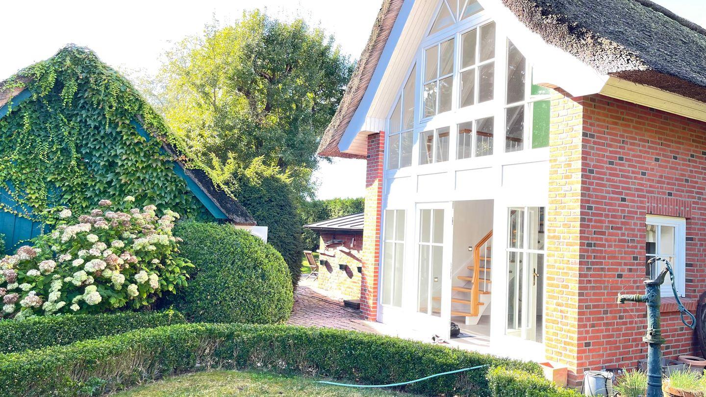 Dieses charmante Reetdachhaus mit Eichenfachwerk wurde in den letzten Jahren liebevoll umgestaltet und modernisiert. Es bietet auf seinen großzügigen 143 qm Wohnfläche ein helles und einladendes Wohngefühl sowie ein gepflegtes Ambiente. Die Inneneinrichtung besticht durch ihre Hochwertigkeit und liebevolle Gestaltung. Der verglaste Eingangsbereich sorgt für viel Lichteinfall und bietet einen herrlichen Blick auf den Hof mit seinen liebevollen Buchsbaumhecken, den dänischen Pflastersteinen und kleinen Gebäuden. Im Eingangsbereich des Haupthauses befindet sich die einladende Diele mit einem stilvoll passenden Esstisch und Stühlen. Der anschließende offene Wohnbereich mit Flur und Wohnzimmer bietet viel Platz zum Entspannen und Erholen. Ein Kamin zaubert dazu an kühlen Tagen eine wohlige Atmosphäre. Für Unterhaltung sorgt der Fernseher sowie ein CD-Radiosystem im Wohnbereich. Im Erdgeschoss stehen Ihnen zwei separate Schlafzimmer mit komfortablen Doppelbetten (140cm x 200cm und 160 x 200 cm) und ausreichend Ablagemöglichkeiten zur Verfügung. Die Schlafzimmer sind mit Verdunkelungsrollos ausgestattet. Für die Kleinsten gibt es ein Kinderreisebett und einen Hochstuhl. Das Bad im Erdgeschoss verfügt über zwei separate Waschbecken und eine eingelassene Badewanne. Im Obergeschoss des Hauses befindet sich ein offener Wohnbereich mit Ottomanen, Bücherregal und kleine Sitzecke mit Blick in den Hof, von wo aus Sie die Sonnenaufgänge genießen können. Dort steht Ihnen ebenfalls ein komfortables Doppelbett (180x200cm) und Ablagemöglichkeiten zur Verfügung. Das zweite, separate Badezimmer im Obergeschoß ist mit einer ebenerdigen Dusche und WC ausgestattet. Im Erdgeschoss steht Ihnen eine Waschküche mit Waschmaschine und Trockner zur Verfügung. Ein Saunahaus im Garten rundet das Angebot ab und sorgt auch an kalten Tagen für entspannte Stunden.