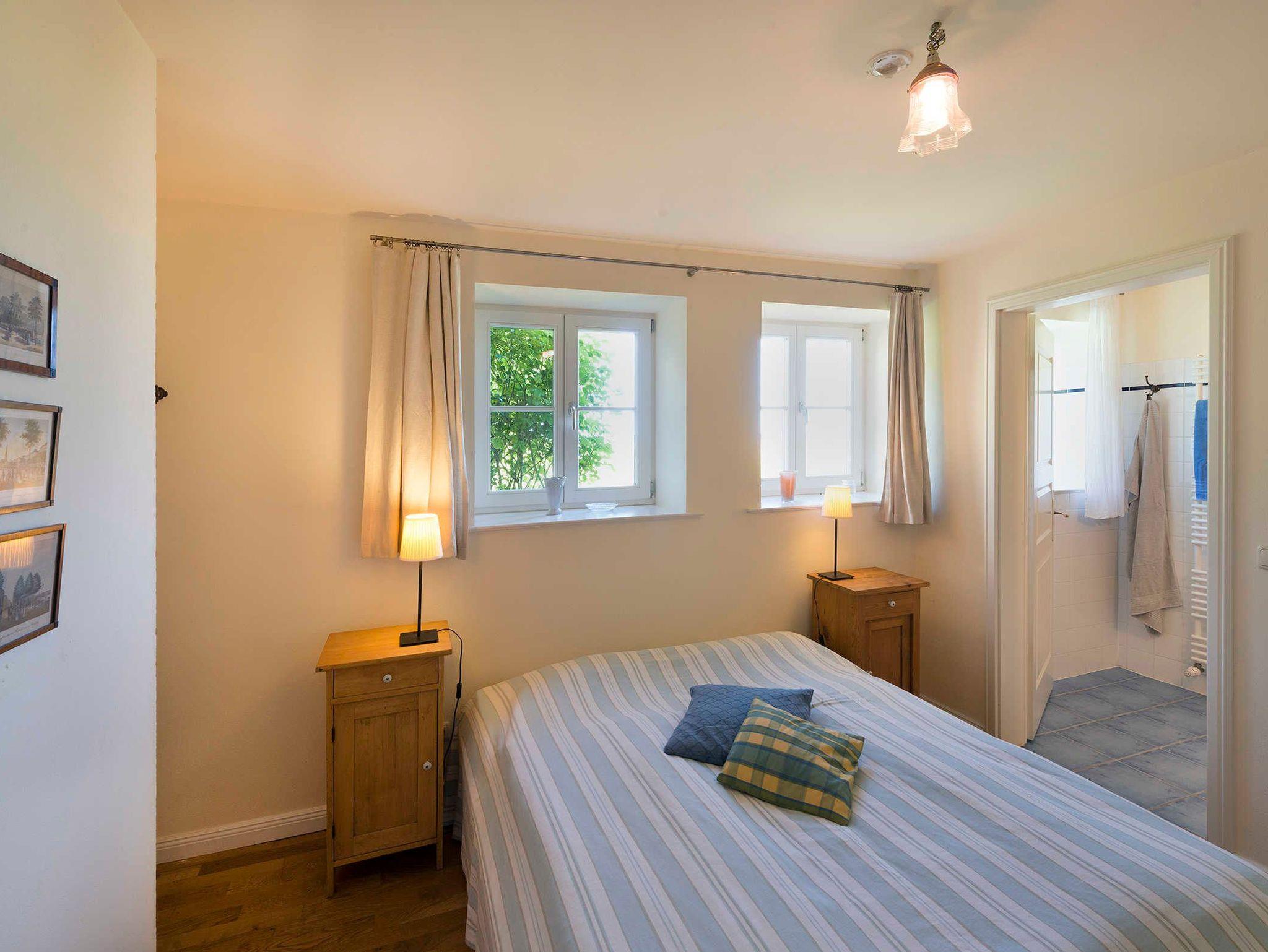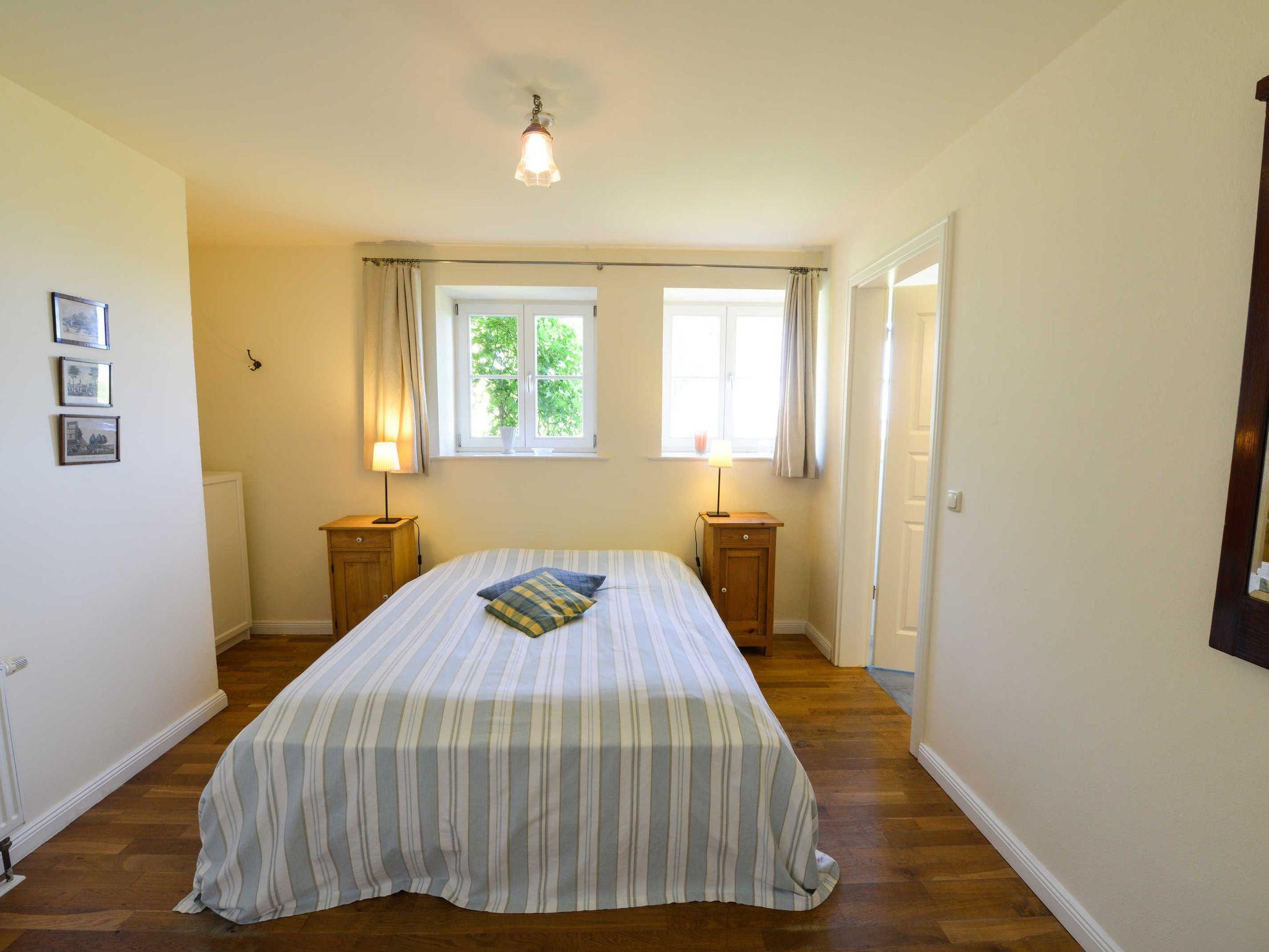 Die Ferienwohnung Nr. 1 befindet sich im Parterre / Souterrain des schönen Gutshauses. Die Wohnung für bis zu zwei Personen und in einer Größe von 50 m² ist mit Liebe zum Detail eingerichtet und besteht aus zwei Zimmern: Ein großes Wohnzimmer mit offener Küche (hochwertige Siemens-Geräte), ein großzügiges Schlafzimmer mit einem Doppelbett, einem großen Badezimmer mit Badewanne und einem kleinen Abstellraum.