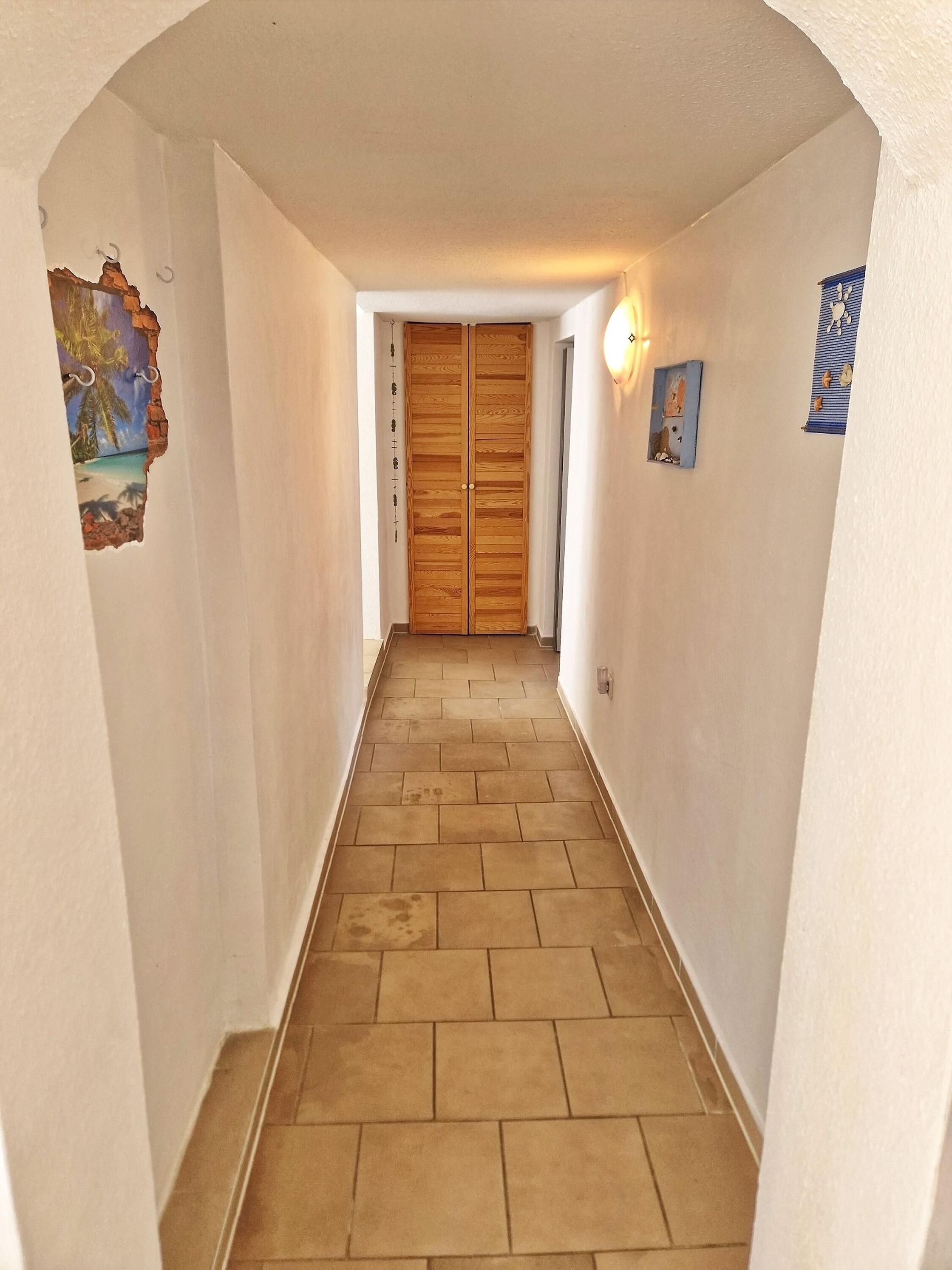 Zu den Räumlichkeiten gehört der helle und freundlich eingerichtete Wohnbereich (TV, Radio vorhanden) mit offener Küche, die u.a. mit Herd, Backofen, Mikrowelle, Kühlschrank, Wasserkocher, Toaster und Kaffeemaschine sowie dem Essplatz ausgestattet ist. In der Küche steht eine Grundausstattung mit den wichtigsten alltäglichen Dingen, wie Gewürze, Zucker und Salz etc. bereit. Weiterhin verfügt das Ferienhaus über 2 separate Schlafzimmer. Das eine der beiden Schlafzimmer ist mit einem Doppelbett ausgestattet. Das 2. separte Schlafzimmer verfügt über ein Doppelstockbett und außerdem über ein Einzelbett. Ein großzügiges Duschbad komplettiert die Räumlichkeiten des Ferienhauses.