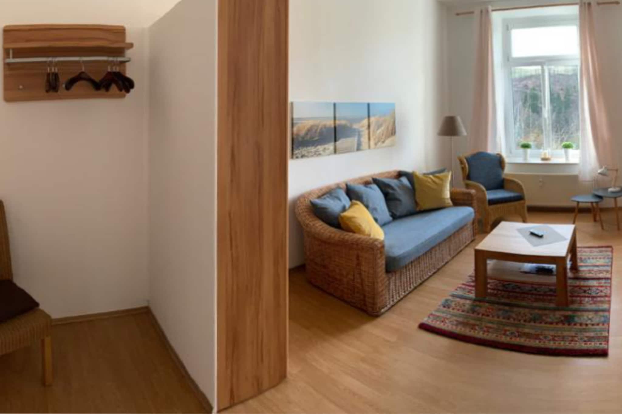 Denne rummelige lejlighed i stueetagen ligger i hjertet af Sachsens Ertsbjerge og tilbyder en nostalgisk charme og er ideel til grupper eller flere familier. Med tre tilstødende boligenheder og egen indgang kan gæsterne nyde fælles stunder, mens de stadig har deres eget rum. Villaparken og lysthuset inviterer til lange, solrige eftermiddage i naturens omfavnelse. Omgivet af godt afmærkede vandre- og cykelstier er beliggenheden perfekt til udendørsentusiaster. Erzgebirgsbahn-stationen kun 300 m væk gør dagsture ubesværede - udforsk Marienberg, Annaberg-Buchholz, Oberwiesenthal, eller tag til Chemnitz (25 km), Dresden (70 km), Karlsbad og Prag. Uanset om det er sommer eller vinter, byder regionen på endeløse aktiviteter. Komfortabelt indrettet med flair for fortiden, dette feriedomicil blander afslapning, eventyr og arv. Det er en port til Sachsens rige minehistorie, traditionelle håndværk og UNESCO-listede landskaber.