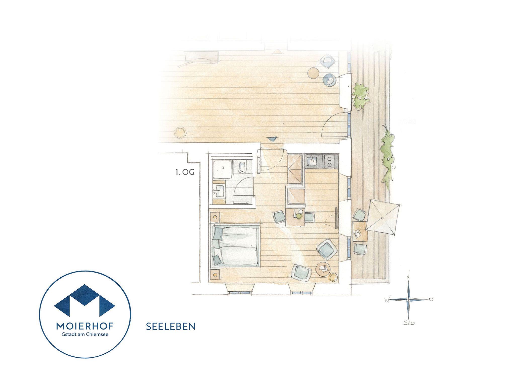 Die wohnliche 5-Sterne-Ferienwohnung „Seeleben“ auf der Süd-Seite im ersten Obergeschoss des Wohngebäudes empfängt Dich mit ihrem harmonischen Ambiente. Auf kleinem Raum ist ein feines Urlaubszuhause für bis zu zwei Personen entstanden. Die mit viel Echtholz bis ins kleinste Detail durchdachte Einrichtung lässt keine Wünsche offen und sorgt mit dezenten Lichtelementen für ein echtes Wohlgefühl. Das moderne Badezimmer rundet die Ausstattung der Ferienwohnung ab. Vom großen Ost-Balkon aus kannst Du den Blick ins Grüne genießen und an der frischen Luft neue Kraft tanken.