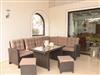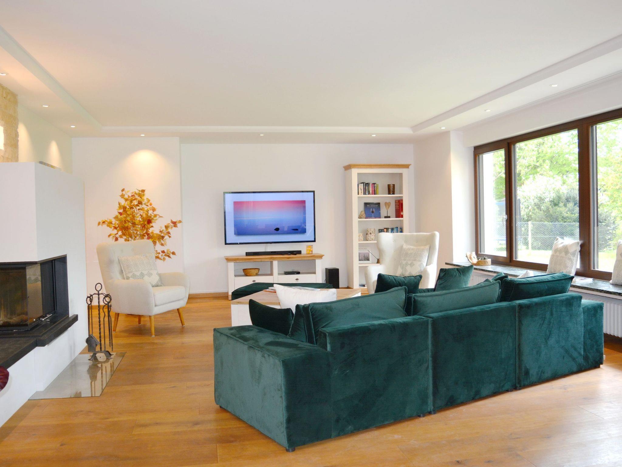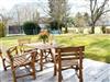 Großer Garten mit Terrasse, Loungemöbeln und überdachtem Bereich