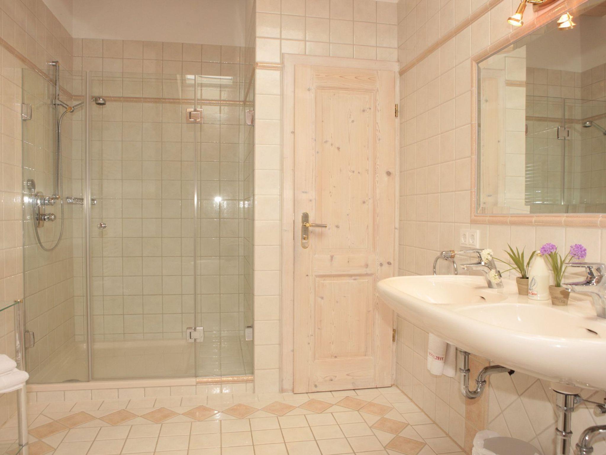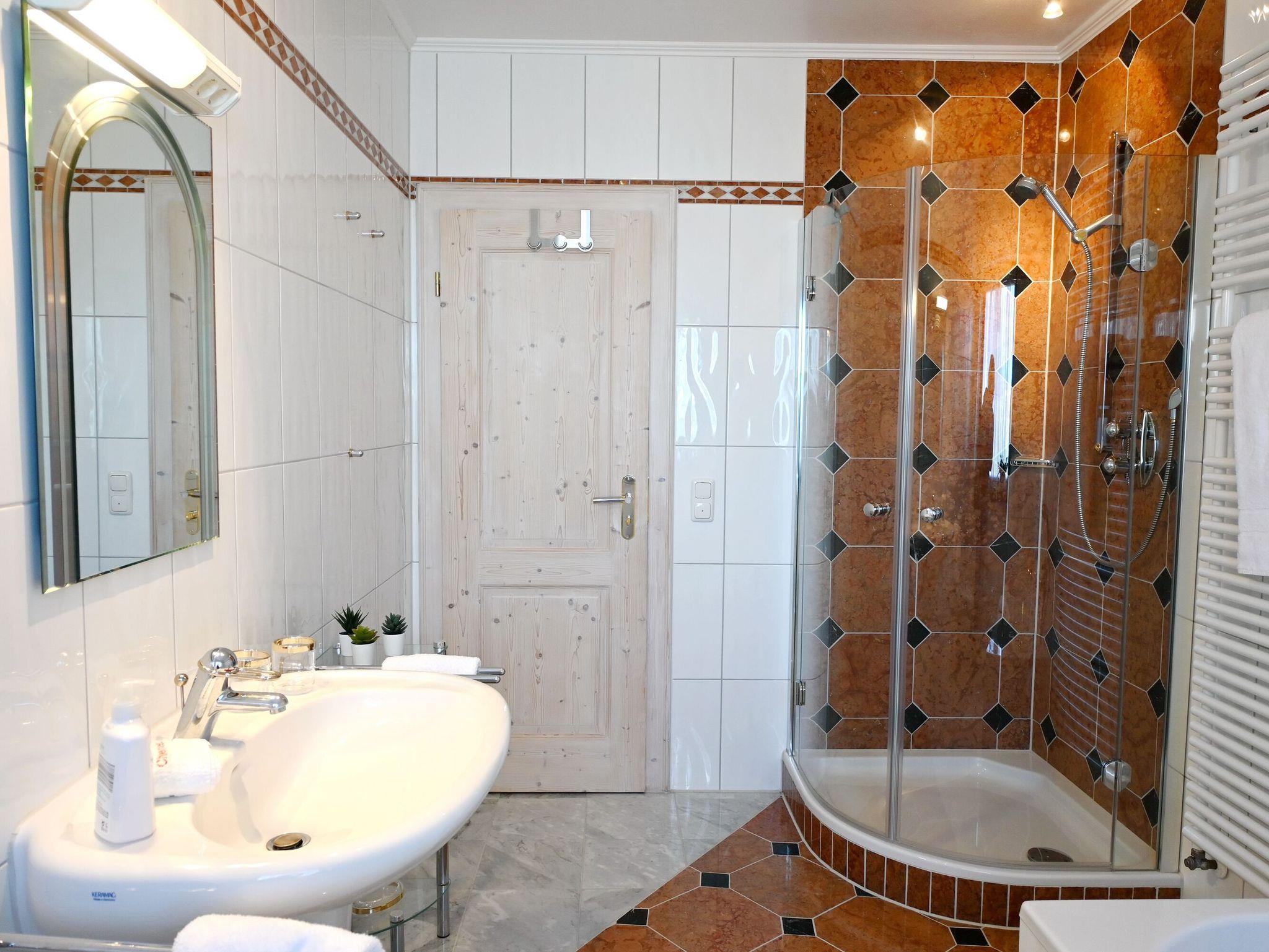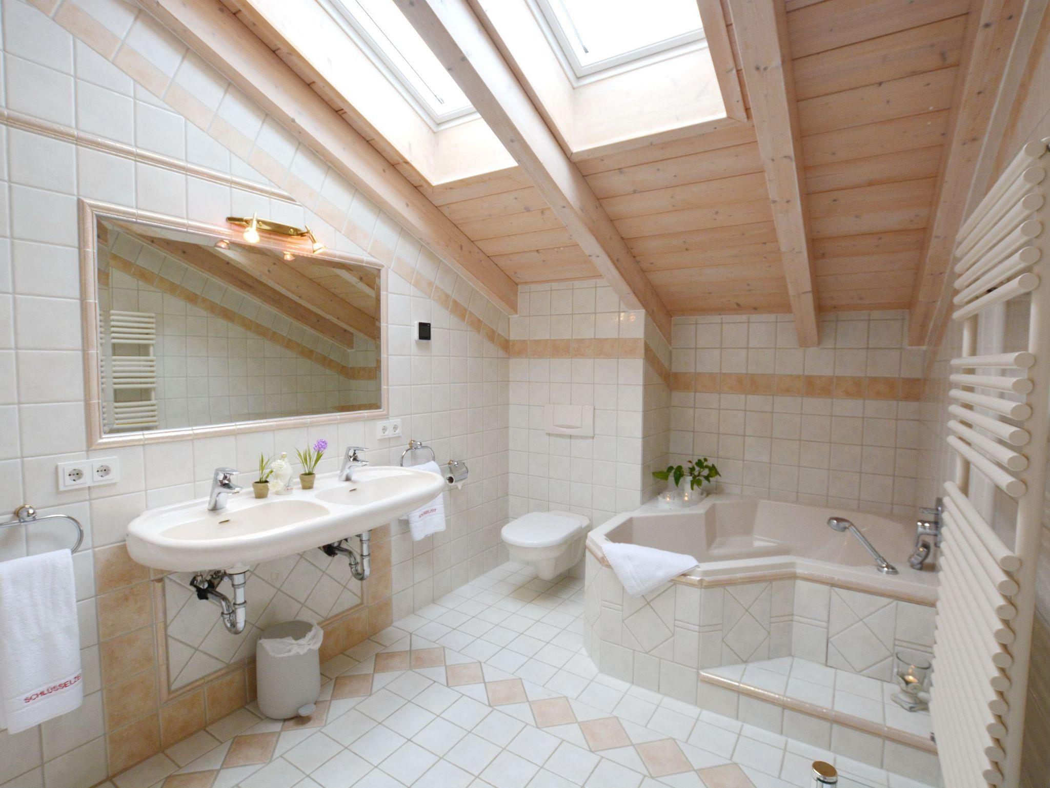 2 Badezimmer eines mit Whirlpool-Badewanne, Dusche und WC, eines mit Dusche und WC