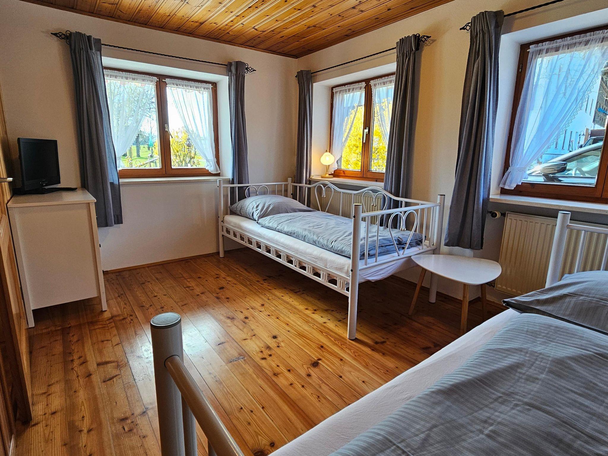 Herzlich Willkommen auf dem Loisenhof. In wunderbarer freier Lage, liegt unser bewirtschafteter Hof mit Kälbern. Genießen Sie die ruhige Lage und den herrlichen Bergblick. Eine hauseigene Minigolfanlage, im sehr großen Garten mit Trampolin, Schaukel, Rutsche, Liegen, Grill und Sitzmöglichkeiten stehen unseren Gästen genauso zur Verfügung wie eine Tischtennisplatte, unsere E-Ladesäulen und ein Ladeschrank für die Akkus der E-Bikes. Zum schönen Chiemsee-Strandbad sind es 700m. Viele Rad- und Wanderwege führen Sie direkt ab Hof durch eine sehr schöne Landschaft. Drei sehr gut ausgestattete Ferienwohnung im Haupthaus mit großem möblierten Ost- bzw Süd-Ost-Balkon. Alle drei FeWo`s verfügen über 2 getrennte Schlafzimmer, Küche mit Essbereich, Spülmaschine, Bad mit Dusche/WC, Föhn, Sat-TV. Die Fewo`s verfügen außerdem über einen geräumigen Eingangsbereich und die FeWo Sonntagshorn außerdem noch über ein kl. Wohnzimmer. Die Ferienwohnung Hochfelln verfügt über einen großen Wohnraum mit Küche, Essbereich und Couch. Im Nebenhaus sind zwei Ferienwohnungen. Die gut ausgestattete FeWo Steinplatte im 1. OG mit einem großen möblierten Süd-Ost-Balkon verfügt über ein Schlafzimmer mit Doppelbett, ein Bad mit Dusche/WC eine Küche mit Spülmaschine und einen Wohnraum mit Essbereich, Couch und Sat-TV. Die FeWo Hochgern im EG mit sehr großer möblierter Terrasse verfügt über ein Schlafzimmer, mit Doppelbett, einen kombinierten Wohn-Schlafraum mit zwei Tagesbetten und TV. Ein Bad mit Dusche/WC und eine Küche mit Spülmaschine und Essbereich.