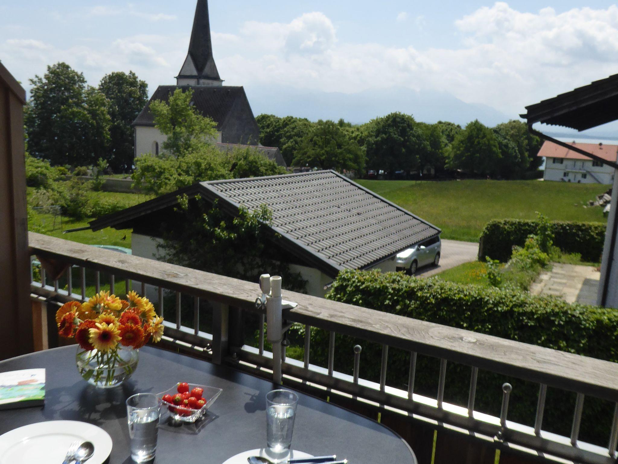 Wir möchten Sie herzlich willkommen heißen in unserer neuwertigen Ferienwohnung in ruhiger, aber zentraler Lage von Gstadt. Die hochwertige und helle Ferienwohnung mit ca. 60 qm befindet sich im 1. Stock mit großem Südbalkon. Von hier aus können Sie in Ruhe den Blick auf die Alpenkette und den Chiemsee genießen. Der große Ess- und Wohnbereich ist mit Schlafcouch (140 x 200 cm) und TV ausgestattet, die Küche mit Kaffemaschine, großer Spülmaschine, Cerankochfeld, Backofen und Mikrowelle, Wasserkocher, Toaster, Kühlschrank mit Tiefkühlfach; im Schlafzimmer befindet sich ein Doppelbett (180 x 200 cm), ein großer Einbauschrank und Verdunklungsvorhänge und im Bad sind DU/WC und Badewanne vorhanden. Auch ein Wäscheständer steht Ihnen zur Verfügung. Eigener Kfz-Stellplatz.