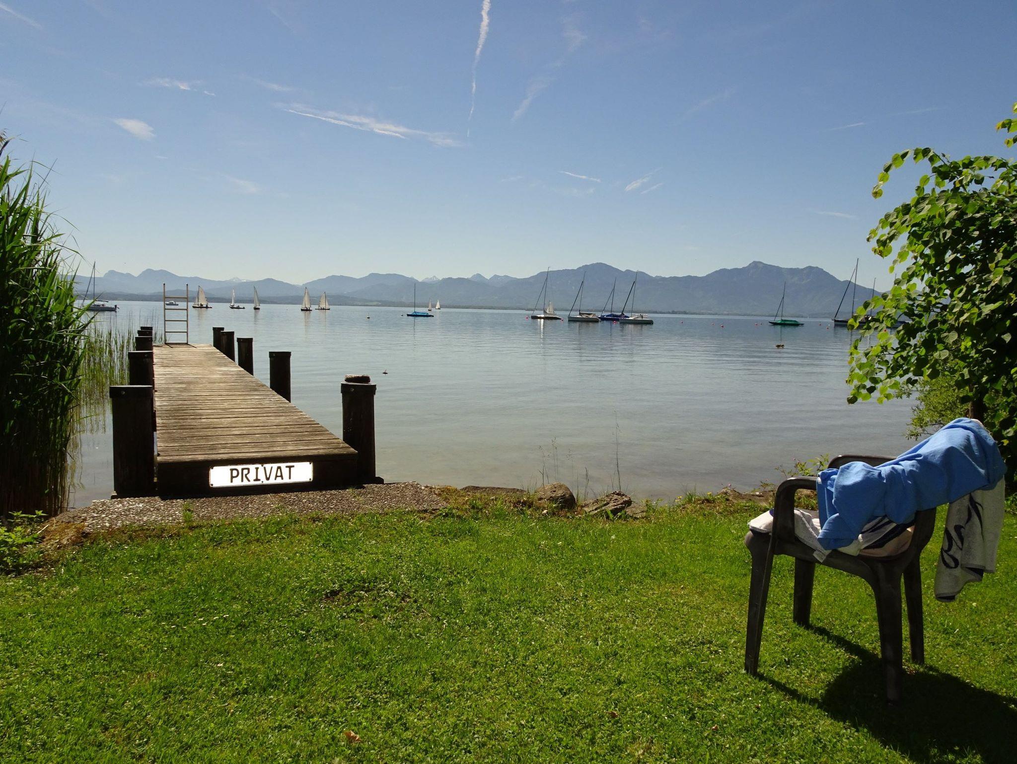 Das Gästehaus liegt direkt am See und verfügt über einen eigenen Badestrand mit Steg, großer Freizeit- und Liegewiese, einer Fahrradgarage und PKW-Stellplätzen direkt am Haus. Alle Appartements befinden sich im ersten Stockwerk - jedes mit eigenem Balkon und direktem bzw. seitlichem Blick auf den Chiemsee.Einkaufsmöglichkeit und Gasthof im Ort sind fußläufig gut zu erreichen.KeineHaustiere.Rauchen ist in unseren Wohneinheiten nicht erlaubt.