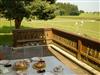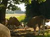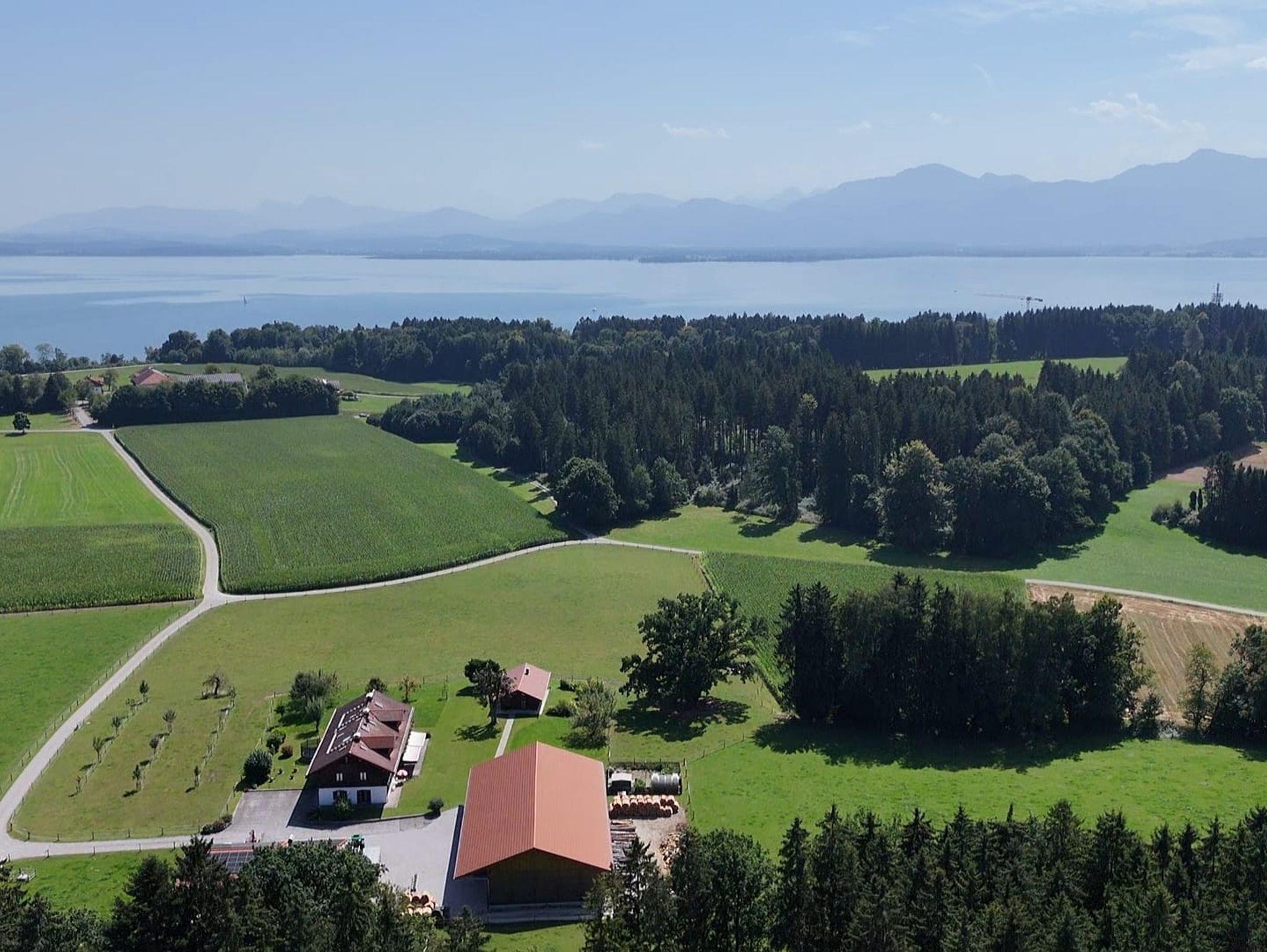 Ferienhäuschen in sehr ruhiger Lage, wie auf einer Alm, Große Terasse, Liegewiese, Grillplatz mit Blick zu den Bergen, Weidetiere um das Ferienhäuschen, in der nähe vom Wald, Rad- und Wanderwege, zu Fuß 10 Min. zum See.