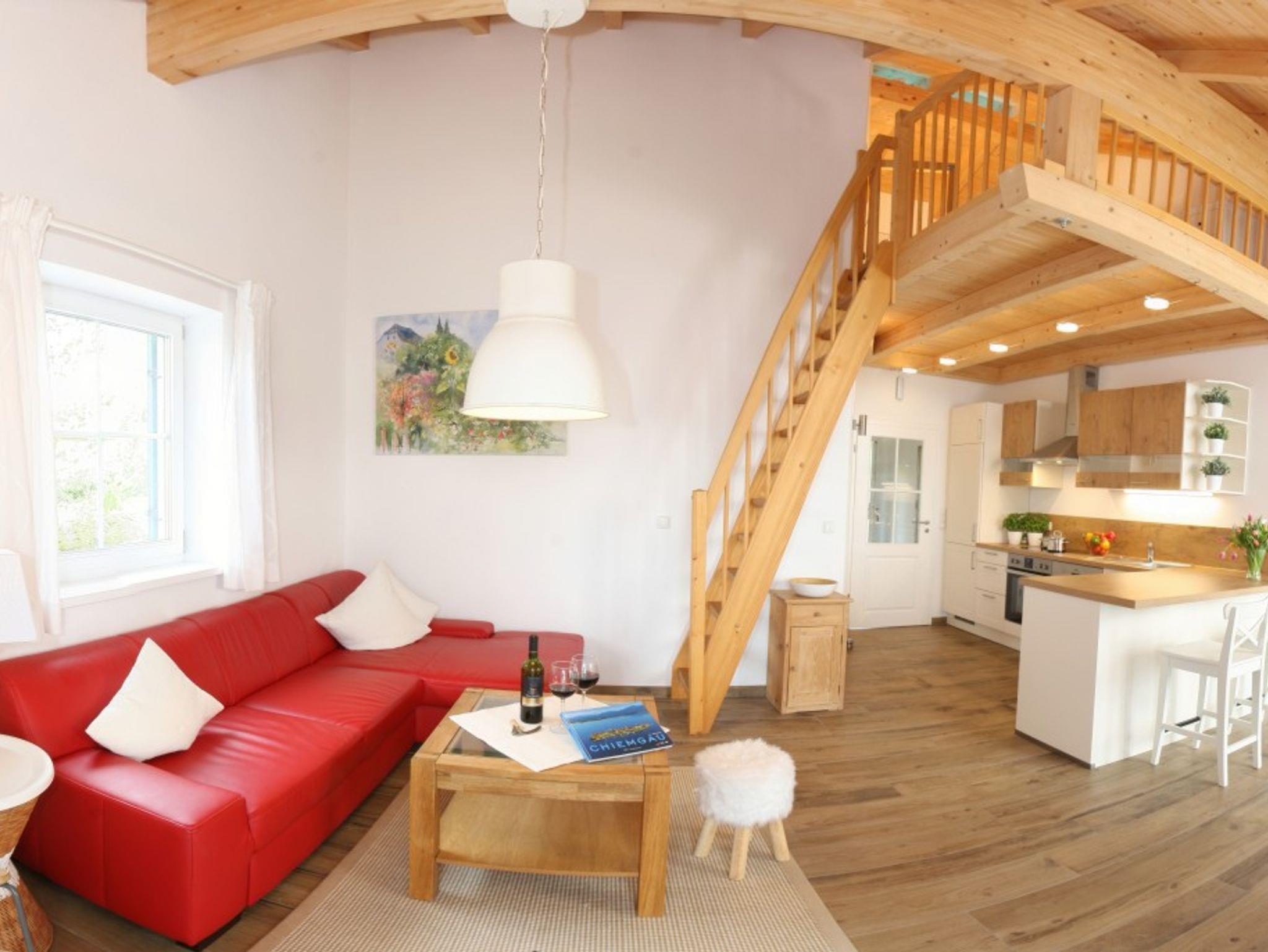 Die Wohnung ist 75 qm groß und mit jeglichem Komfort ausgestattet. Ein großzügiger Wohnraum; gemütlichem Sofa; schönem Essplatz und HD Fernseher; einer offenen Küche die mit Spülmaschine, Iduktion-Backofen, Kühlgefrierschrank, Kaffeemaschine, Wasserkocher, Toaster, Kaffeepad Maschine ausgestattet ist. Über eine Treppe geht es hinauf zur Galerie mit einem zusätzlichen Bett (1,40m breit). Vom Balkon aus bietet die Wohnung einen atemberaubenden Panoramablick auf den See, Inseln und die Berge. Das Schlafzimmer ist modern und pfiffig eingerichtet und hat ebenso einen Fernseher. Im Bad ist für Sie ein Föhn und ein Radio vorhanden. Waschmaschine/Trockner sind im separaten Raum für alle Gäste des Hauses Chiemsee Blick zugänglich.