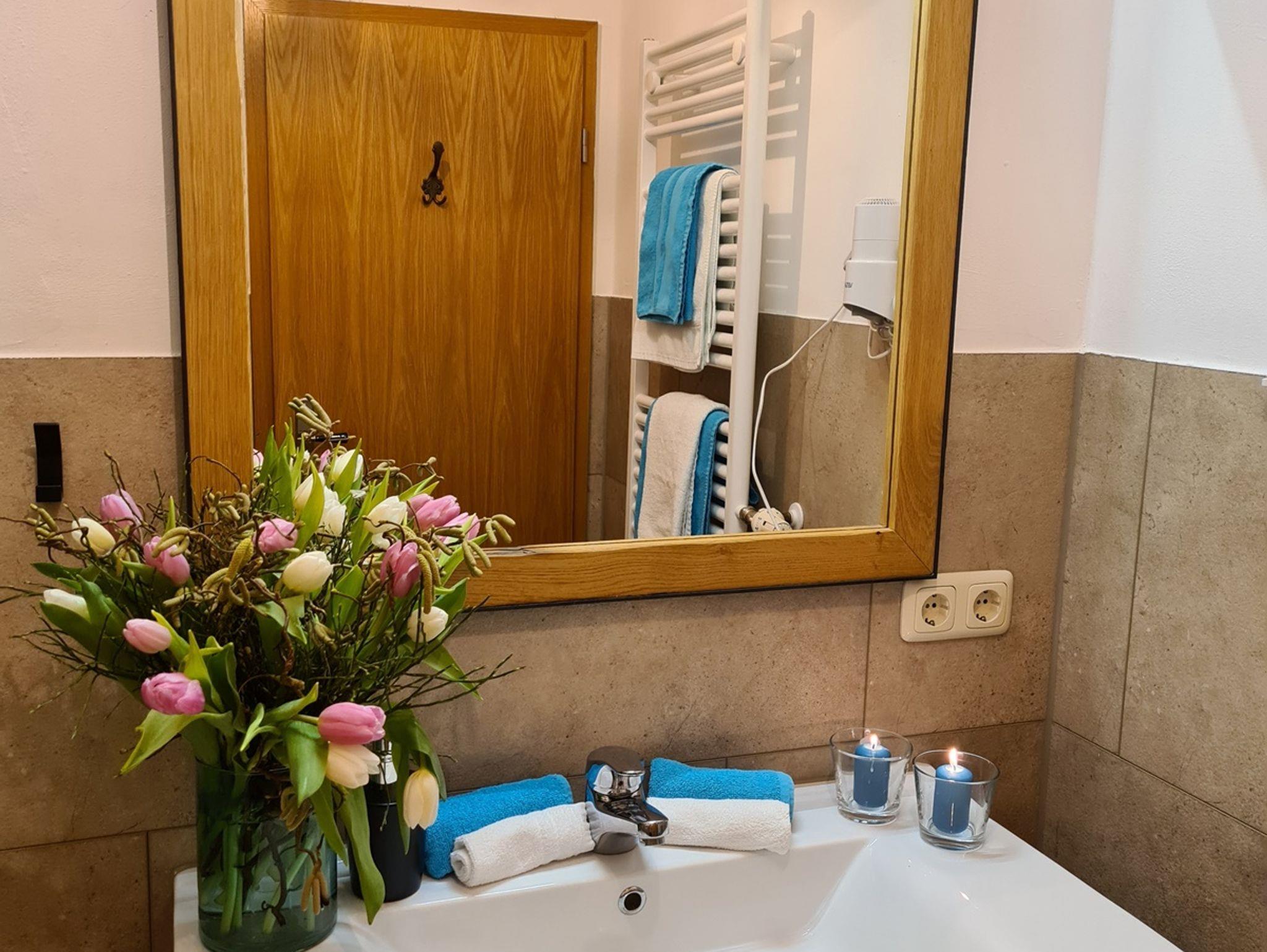 Bettwäsche, Handtücher Tischwäsche, Geschirrtücher und Spülmittel werden vom Haus gestellt, im Bad ist ein Föhn vorhanden und der Wohnbereich verfügt über ein TV-Gerät.