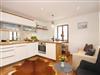 Die Küche ist mit Kühlschrank, Geschirrspüler, Induktionsherd ausgestattet – Mikrowelle und Gefriertruhe stehen im Flur.