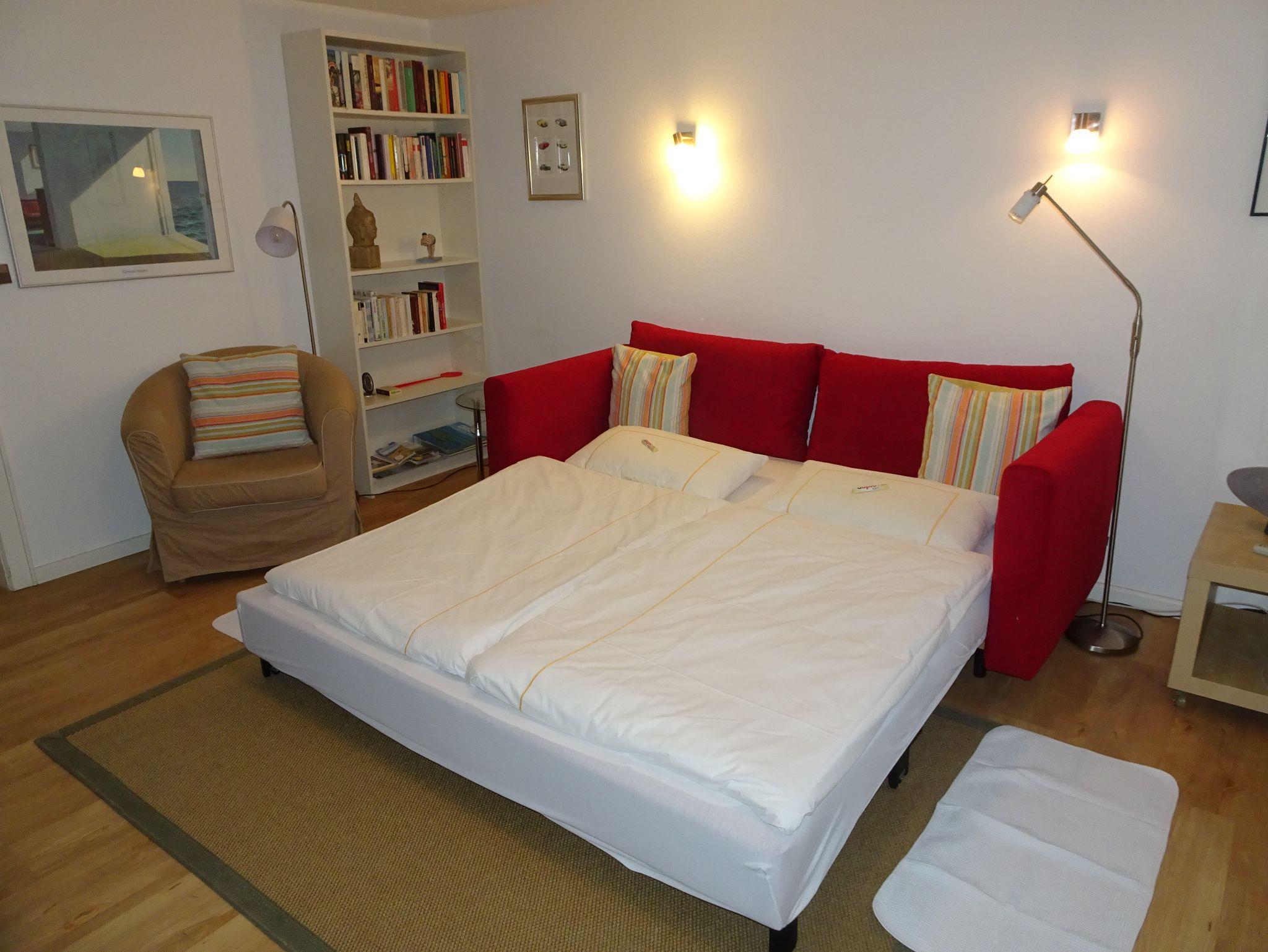 Dieses Appartement befindet sich im Erdgeschoss vom Zuhäusl (steht direkt neben dem Haupthaus). Ihnen stehen zur Verfügung: 1 Wohn-, Schlafraum mit Schlafsofa (160 cm x 200 cm); 1 kleine Küche mit Essecke, 2 Herdplatten, 1 Kombigerät mit Mikrowelle/Backofen/Grill, Kühlschrank und alles was in einer Küche gebraucht wird; Fernseher und CD-Anlage mit Radio; 1 kleines Duschbad mit Waschbecken und WC.