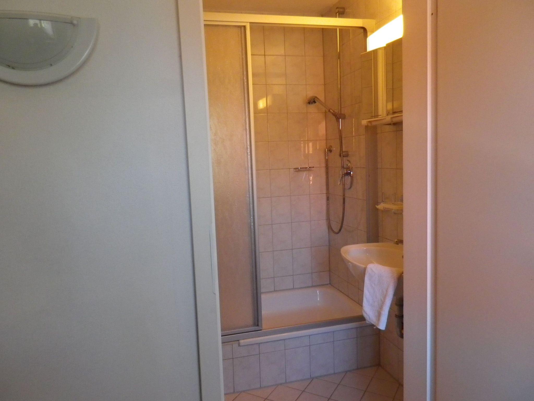 Das Appartement liegt im ersten Stock und verfügt über einen Wohn-Schlafraum, eine Kochnische, eine Dusche, ein WC und einen zum Appartement dazugehörigen Balkon mit See- und Bergblick und Sonne bis ca. Mittag. Der Zugang zum Balkon erfolgt über den Hausflur. Das Appartement ist ein Nichtraucher-Appartement.