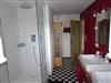 Das Badezimmer verfügt über zwei Waschbecken, ein WC, Dusche mit Regendusche.