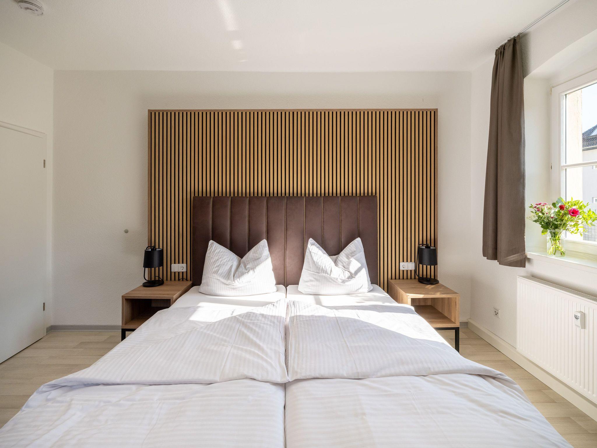60m² Nichtraucherwohnung, moderne Einrichtung, Bad mit Dusche, Einbauküche, 1 Doppelbett, 1 Einzelbett, Schlafsofa, für max. 5 Personen