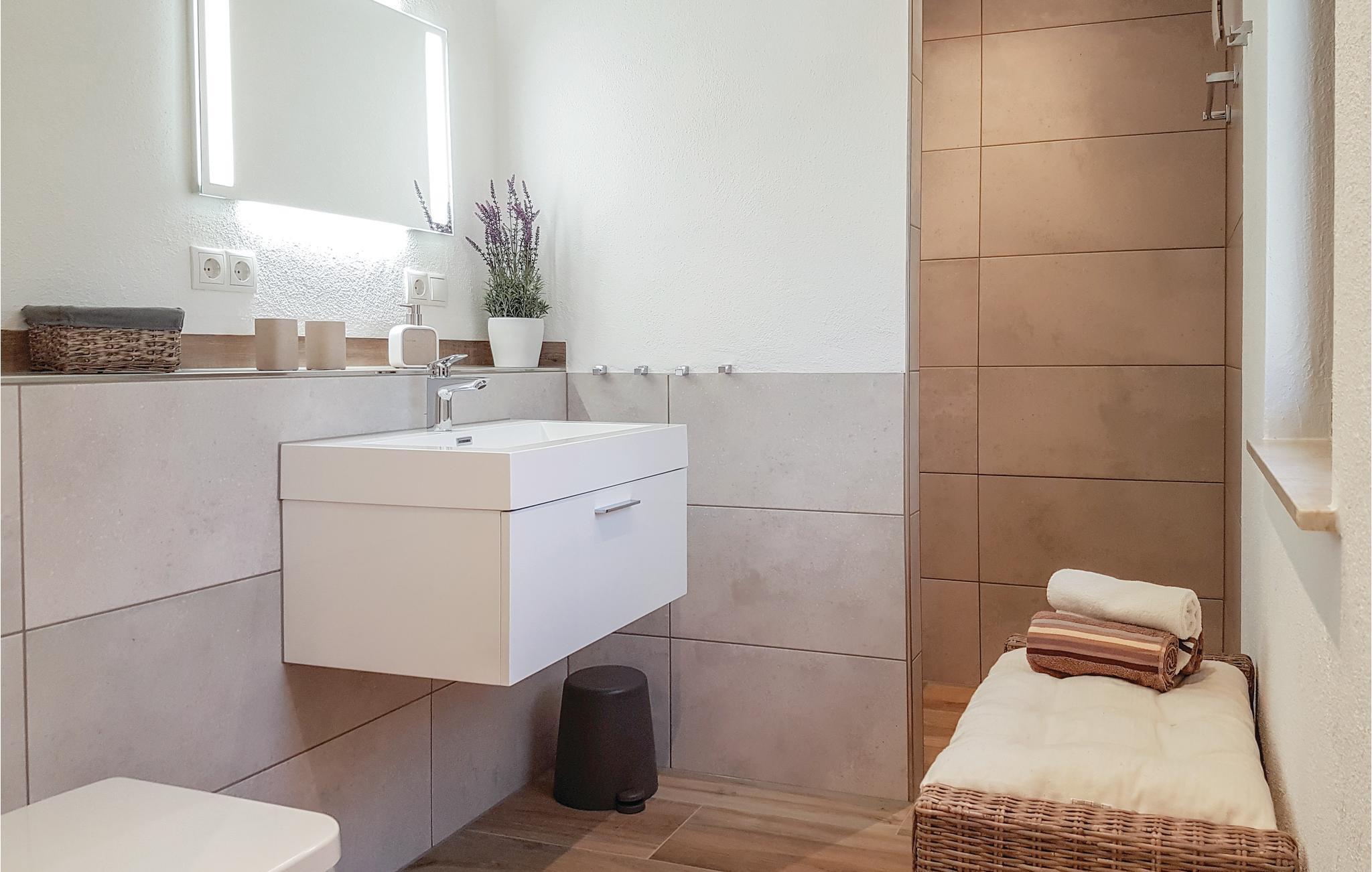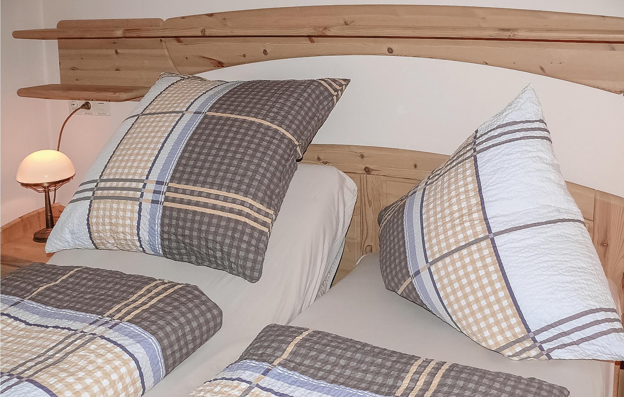 I det moderne og eksklusive badeværelse er der en "walk-in shower". Brusebadet har gulvvarme ligesom resten af badeværelset. Her er to moderne soveværelser der er indrettet med masser af træ. I det ene er en dobbeltseng med mulighed for at justere højde, i det andet soverværelse en køjeseng.