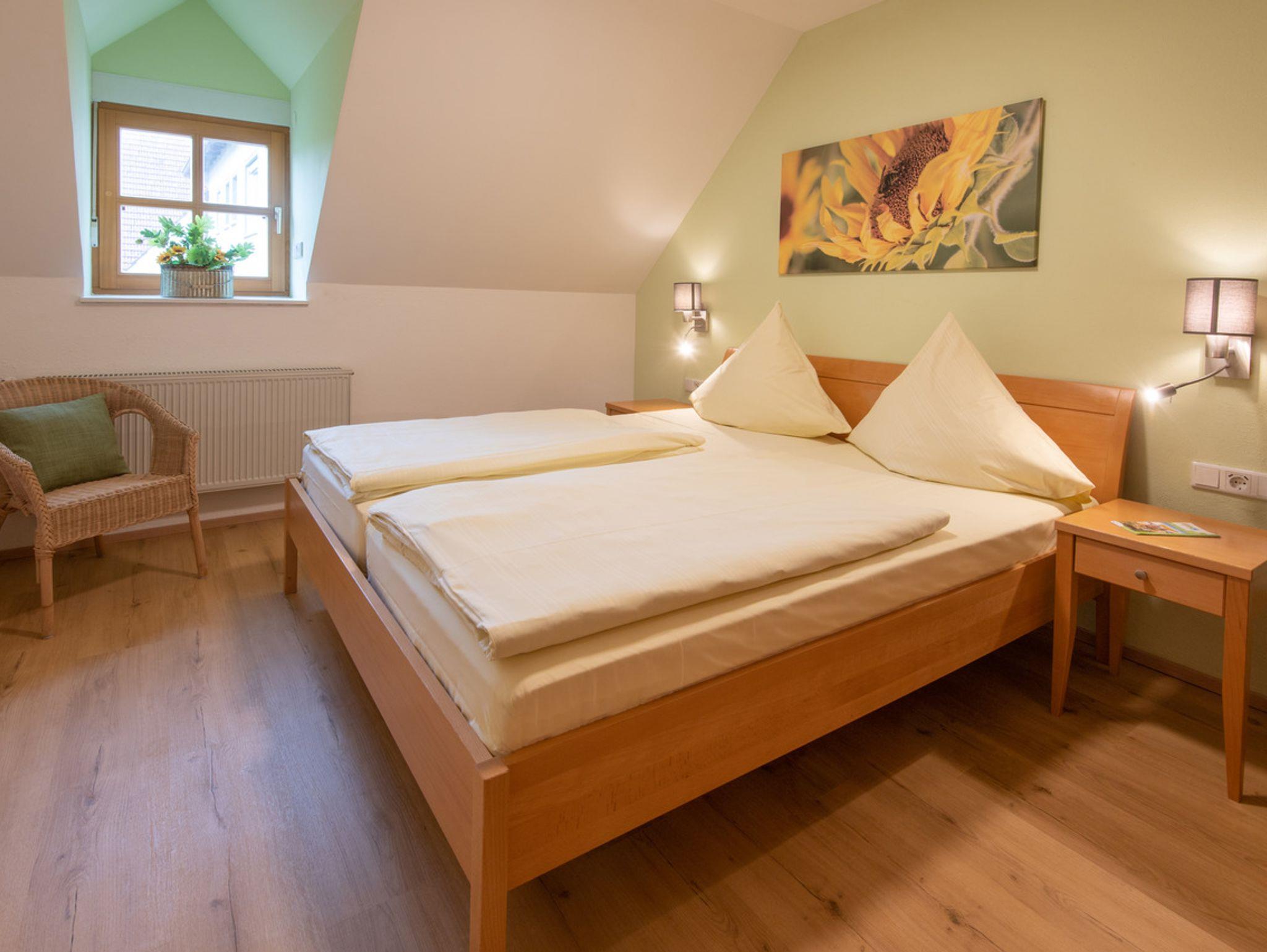 Ferienwohnung Nr. 5 hat 62 qm, ist mit 4 Sternen (DTV) bewertet, wurde 2023 neu renoviert und bietet Platz für 4 - 5 Personen. Elternschlafzimmer mit 1 Doppelbett ( 200x200 ) sowie Kindergitterbett. Kinderzimmer mit 2 Einzelbetten (je 90x190). Die komplett ausgestattete Küche mit Geschirrspüler, Kühlschrank inkl. Gefrierfach, Ceranfeld, Backofen, Mikrowelle, Wasserkocher, Eierkocher, Toaster und Kaffeemaschine mit Mahlwerk lässt keine Wünsche offen. Essplatz und Sofa sowie Flachbild -TV mit Kabelanschluß. Überdachten Balkon mit direkten Blick zum Storchennest.