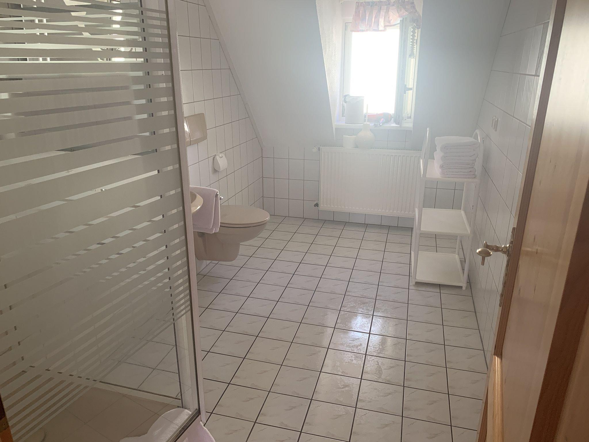 Die freundlich und stilvoll gestaltete Wohnung 3 ist ca. 70 qm groß. Die in sich abgeschlossene Wohnung befindet sich in der 1. Etage, mit Schlafräumen bestehend aus einem Doppelbett mit einem Kinder/-Babybett, sowie einem Zweibettzimmer im Obergeschoss. Im Wohnraum befindet sich eine Essecke, eine Couchgarnitur, Sat-TV und eine komplett ausgestattete Küche (inklusive Spülmaschine, Kühlschrank, Kaffeemaschine, Wasserkocher, Backofen, Toaster). Im Bad mit Fenster ist eine Dusche, ein Waschbecken und ein WC.