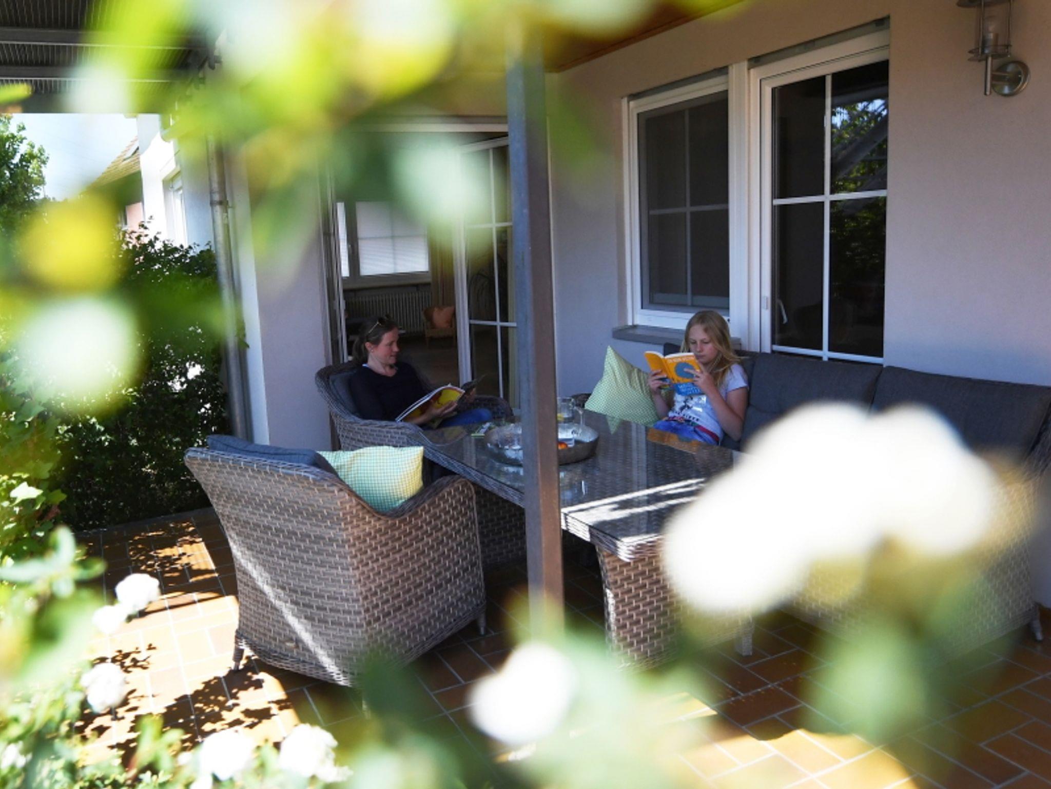 Die Wohnung Sonnenblume ist ca. 90 m² groß und befindet sich im Erdgeschoss mit eigener überdachter Terrasse und Zugang zur Liegewiese.