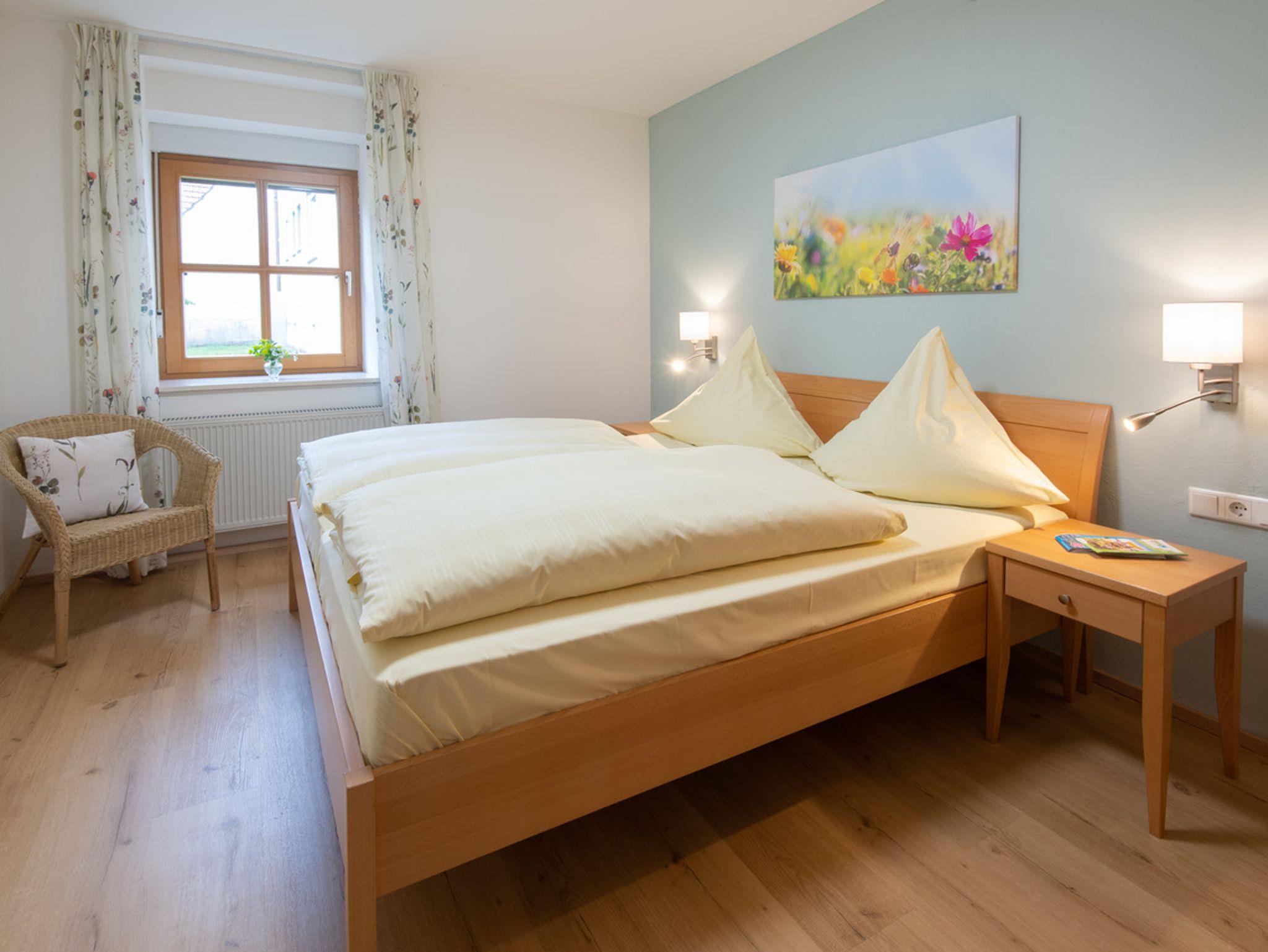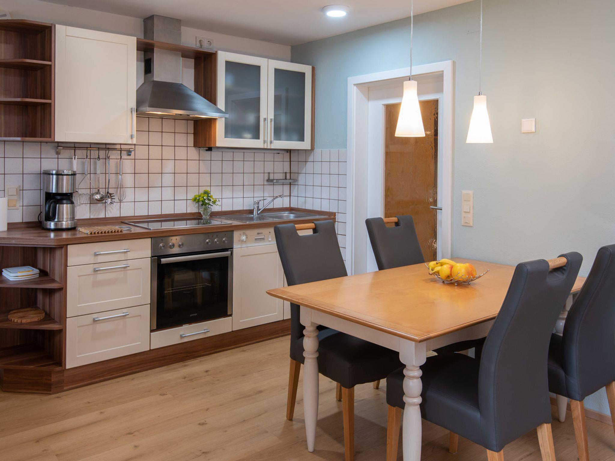 Ferienwohnung Nr. 4 hat 72 qm, ist mit 4 Sternen (DTV) bewertet, wurde 2022 neu renoviert und bietet Platz für 4 - 5 Personen. Großes geräumiges Elternschlafzimmer mit 1 Doppelbett ( 200x200 ) sowie Kindergitterbett. Kinderzimmer mit 2 Einzelbetten (je 90x190). Die komplett ausgestattete Küche mit Geschirrspüler, Kühlschrank inkl. Gefrierfach, Ceranfeld, Backofen, Mikrowelle, Wasserkocher, Eierkocher, Toaster und Kaffeemaschine mit Wahlwerk lässt keine Wünsche offen. Essplatz und Sofa sowie Flachbild -TV mit Kabelanschluß und blick zum Storchennest.