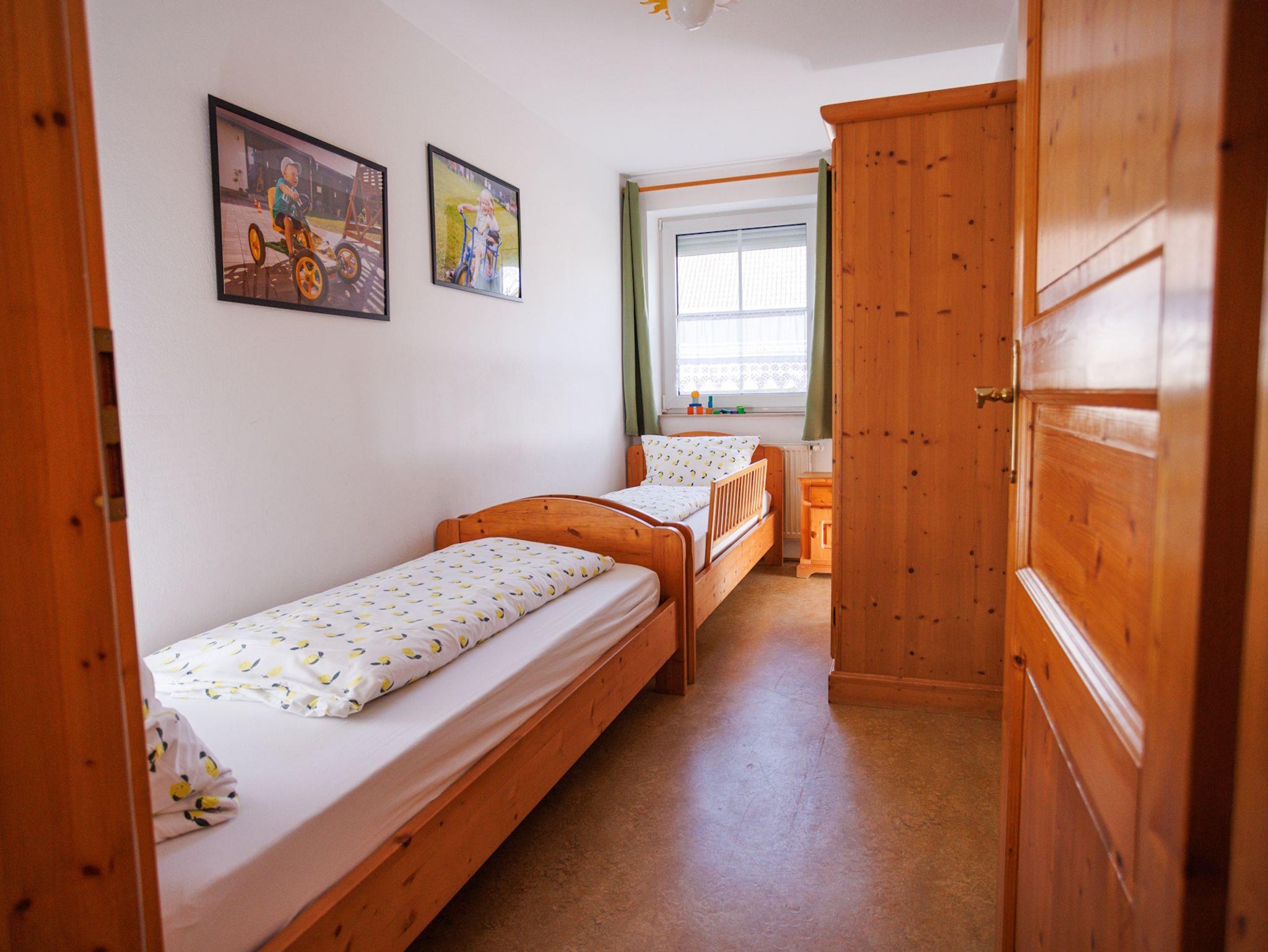 Sie bietet euch drei Schlafzimmer, darunter ein großes Familienbett (260 x 200 cm), sowie einen einladenden Wohnraum mit voll ausgestatteter Küchenzeile, ein modernes Bad mit Dusche und ein zusätzliches WC. Die 70 qm große Wohlfühlwohnung liegt im Erdgeschoss unseres Gästehauses und ist wunderbar geeignet für große Familien und auch für alle, die gemeinsam mit Oma und Opa reisen.