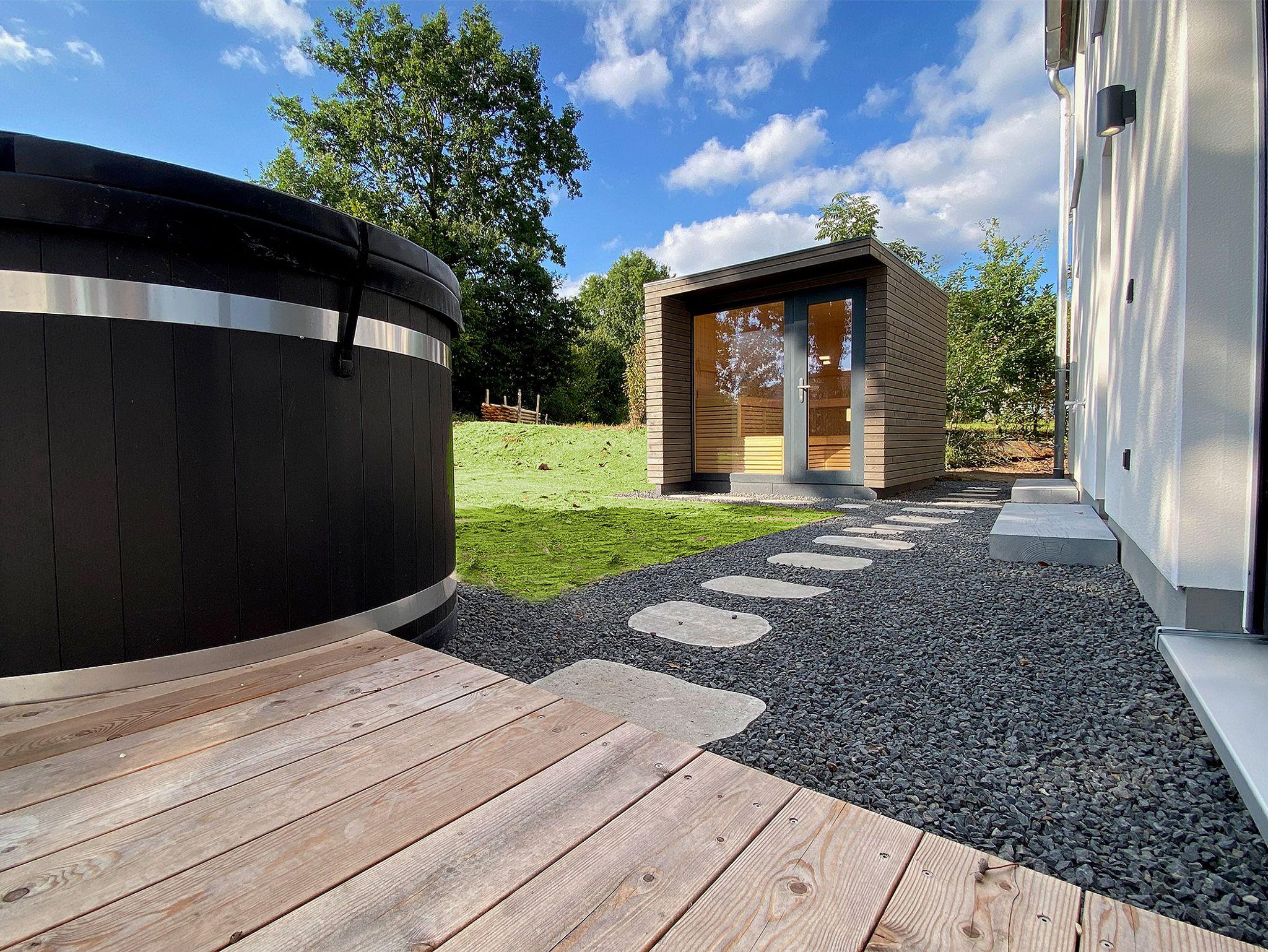 Mit Swimming-Pool, eigener Sauna, eigenem Badezuber (auch Hottub genannt – eine rustikale Form von Whirlpool), Kamin, viel Raum und Privatsphäre verfügen Sie über ein Hide-Away mit extra Wohlfühlambiente in einem modernen, nachhaltigen Holzbau.