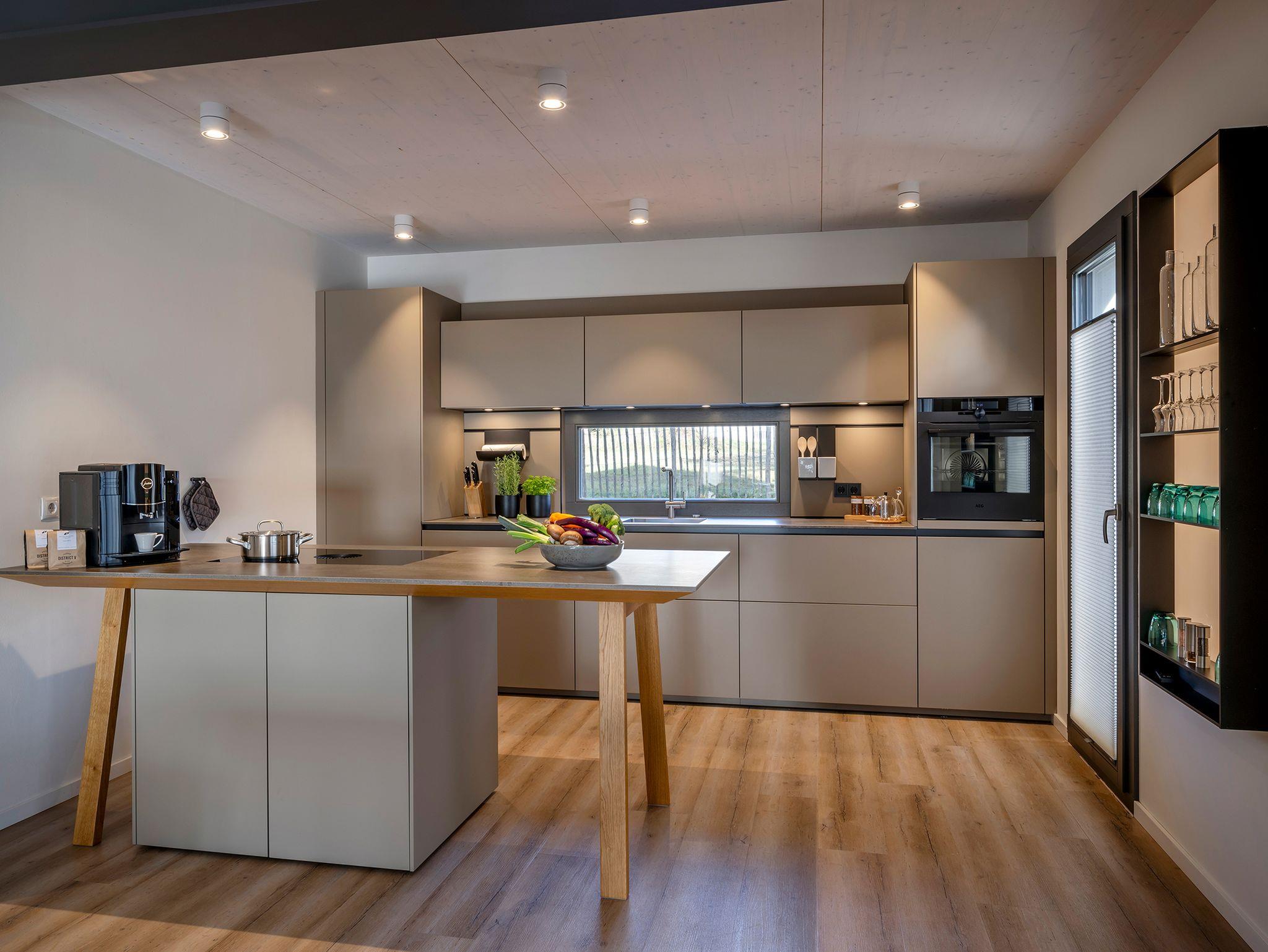 - Luxus-Küchen von Schüller-Küchen und next125 mit Keramik-Arbeitsplatten, modernen Muldenlüftern von BORA, Dampfbackofen von AEG und Kaffeemaschine von Jura