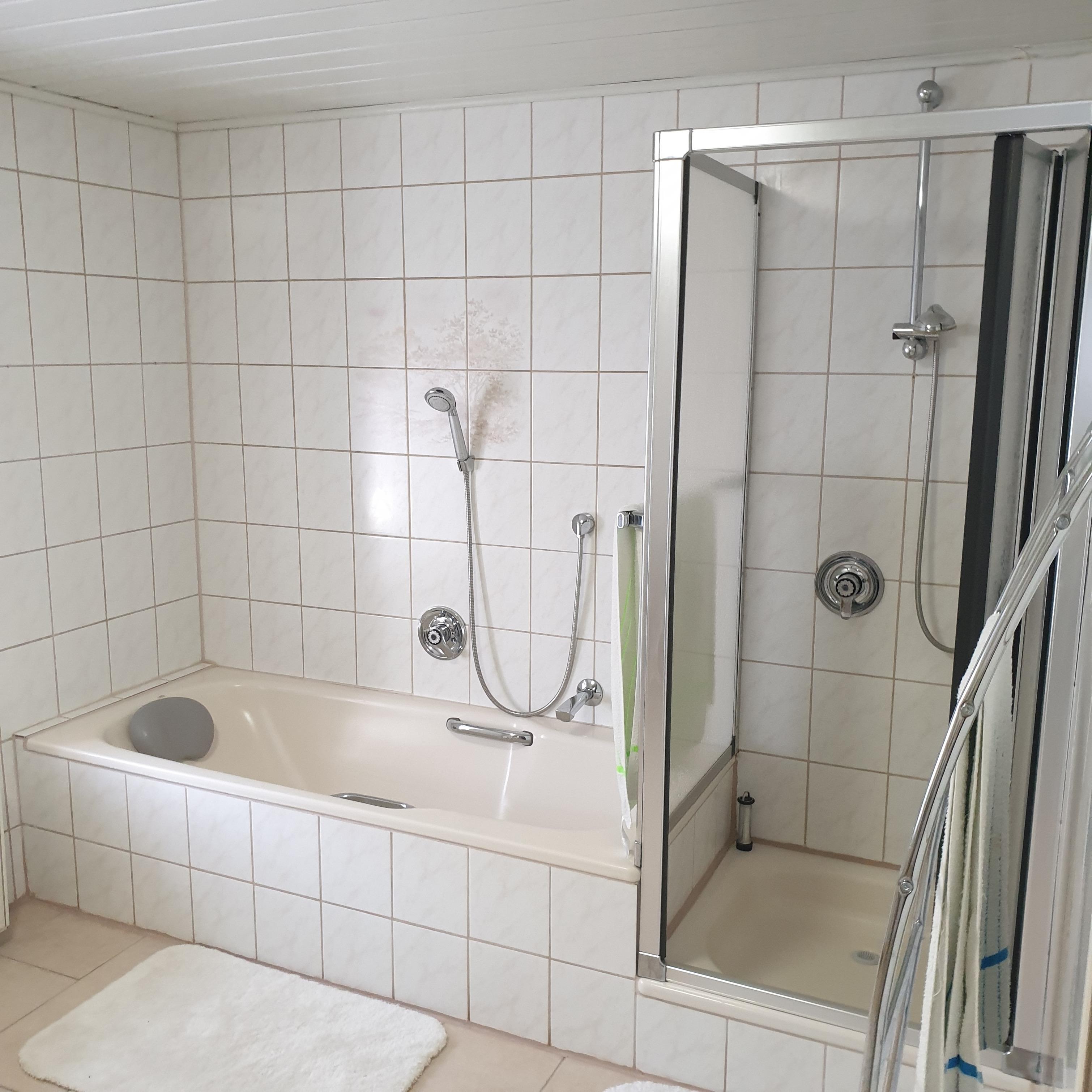 Badeværelse med bruser og badekar