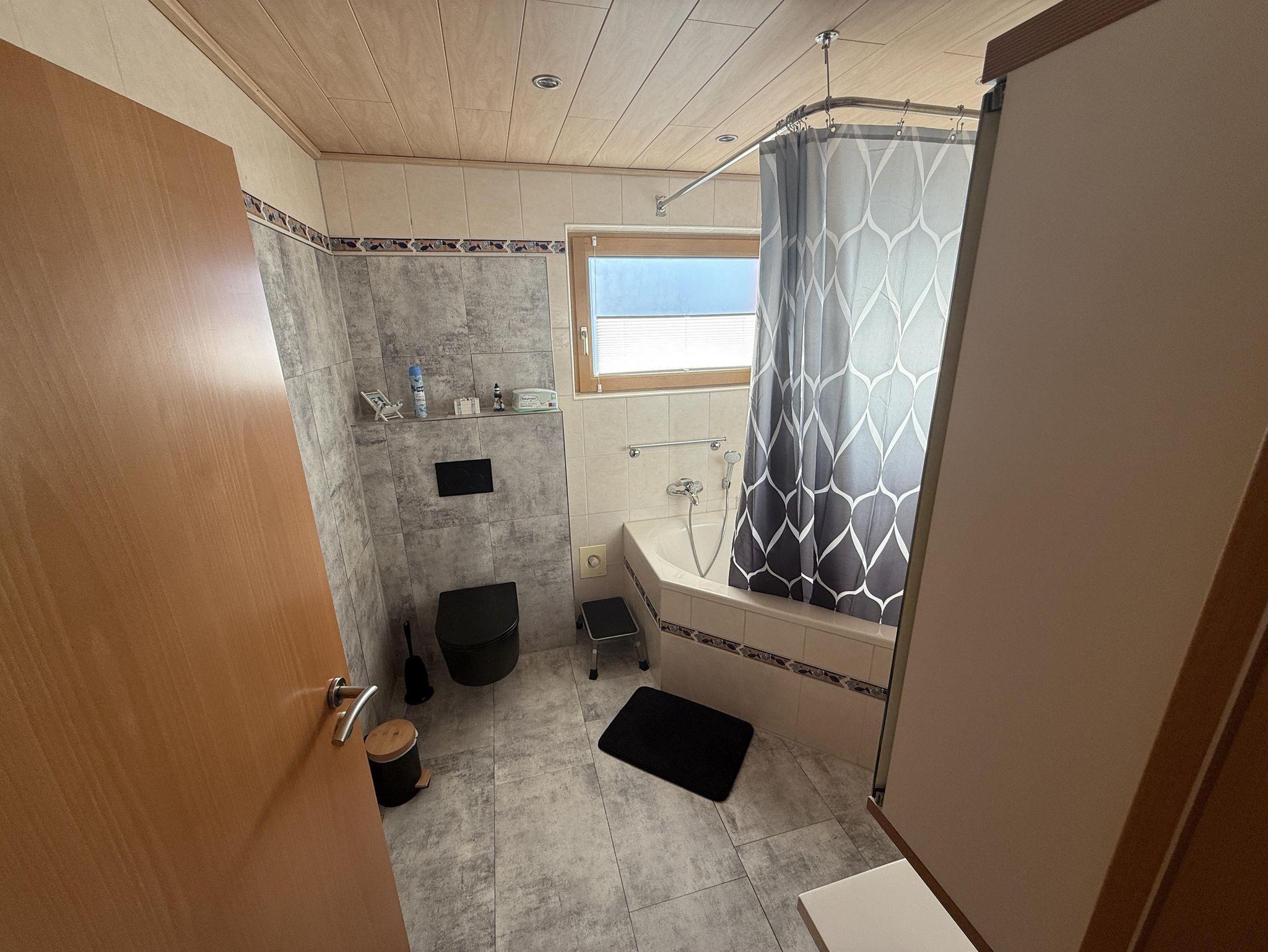 ist mit einer komfortablen Badewanne ausgestattet, die auch eine Dusche beinhaltet – perfekt für entspannende Momente nach einem erlebnisreichen Tag.