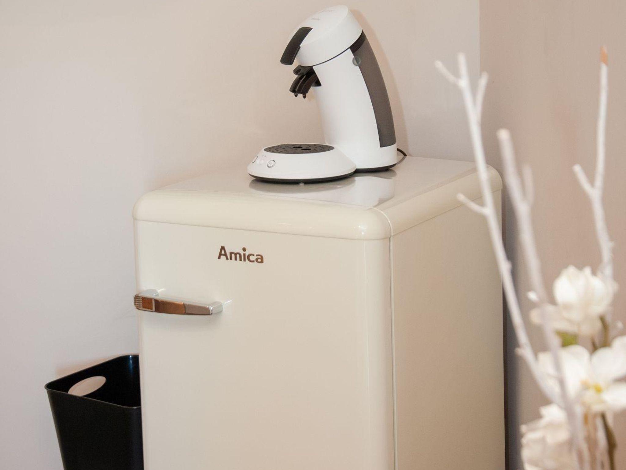Pantryküche, Kühlschrank mit Gefrierfach, Toaster, Wasserkocher, Senseo Kaffeemaschine, TV, WLAN