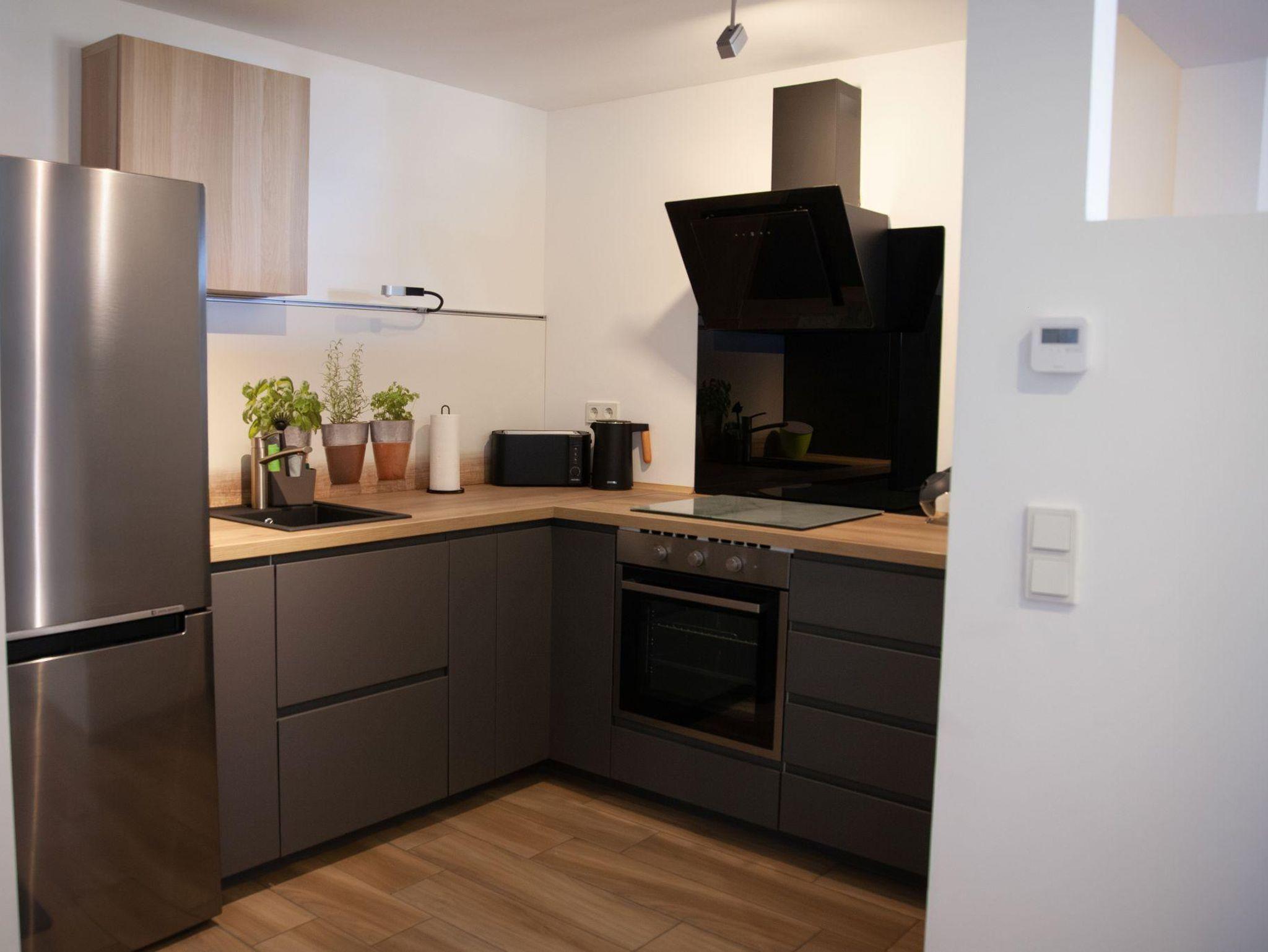 Küche, Kühlschrank mit Gefrierfach, Toaster, Wasserkocher, Senseo Kaffeemaschine