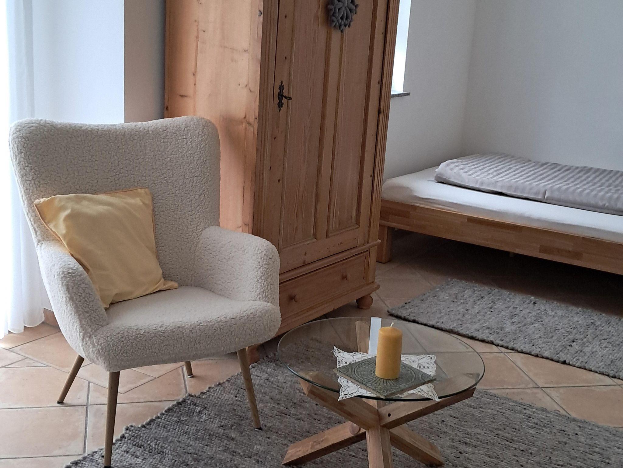 1 - 2 Personen können im Appartement wohnen. Es verfügt über ein 140 cm breites Bett sowie eine Schlafcouch.
