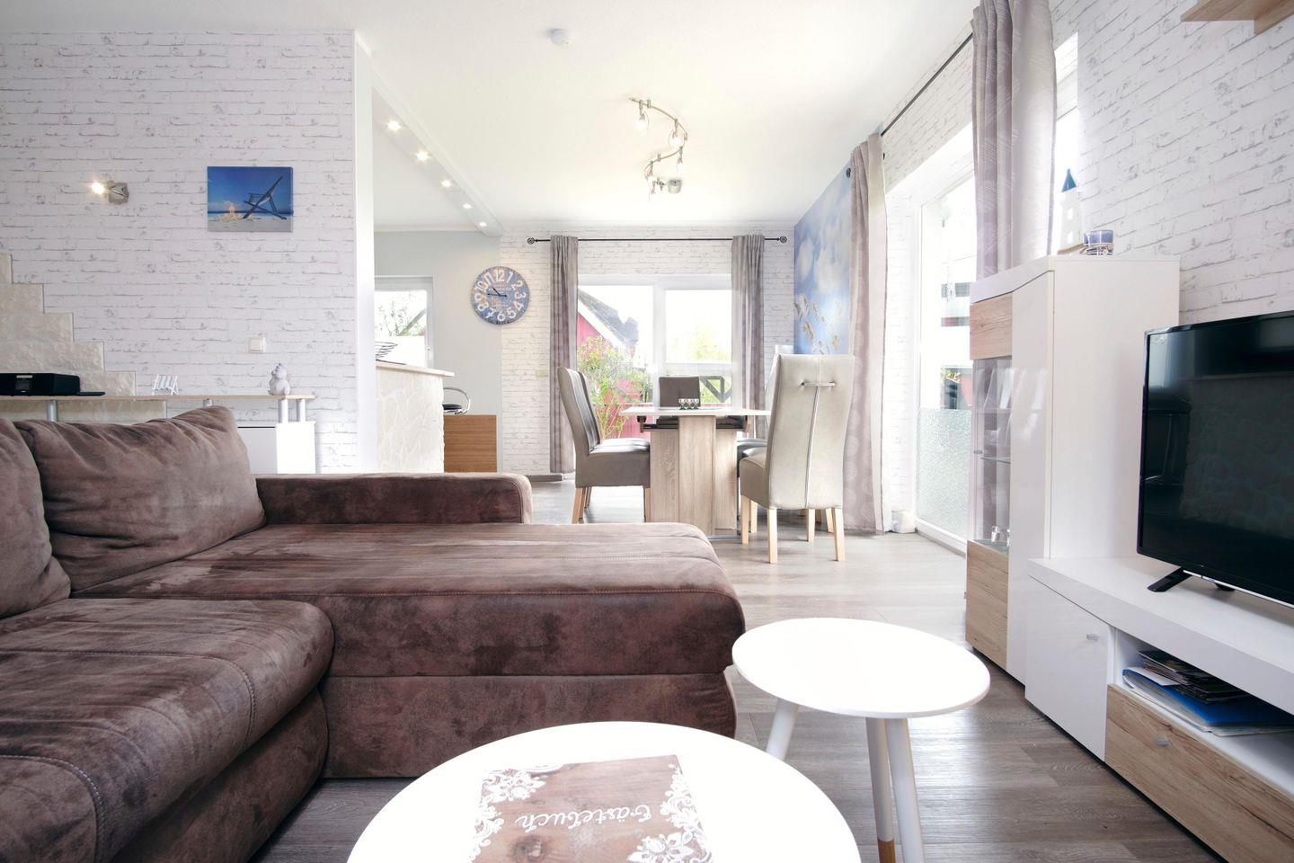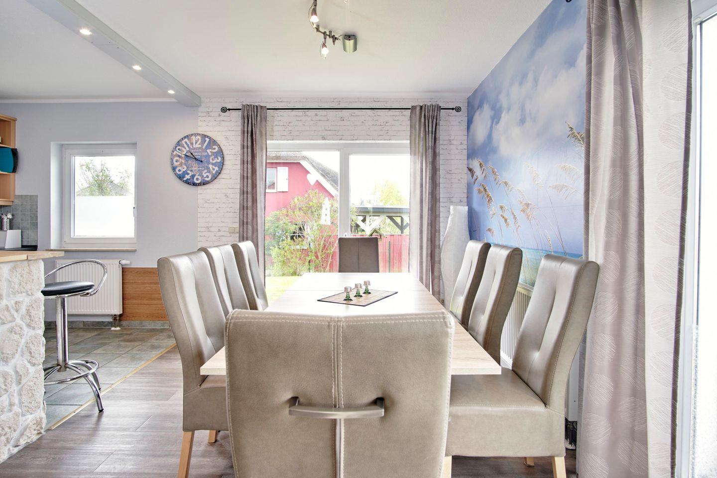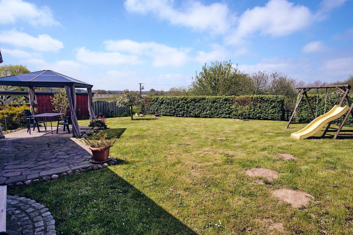 Das ca. 140 m² große, gemütlich eingerichtete Ferienhaus "Sonnengarten" für bis zu 8 Personen befindet sich in dem kleinen Ort Gustow.