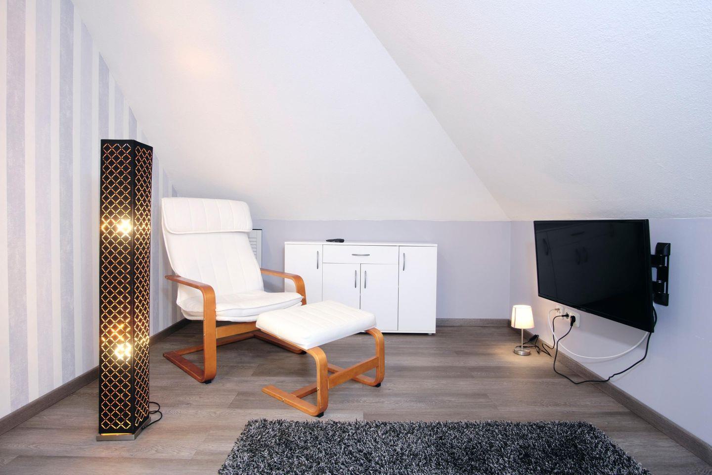 Das Feriendomizil verfügt auf 2 Ebenen über 1 komb. Wohn-/Esszimmer, 1 Küche, 6 Schlafräume, 2 Bäder und einen ca. 500 m² großen, komplett eingezäunten Garten.