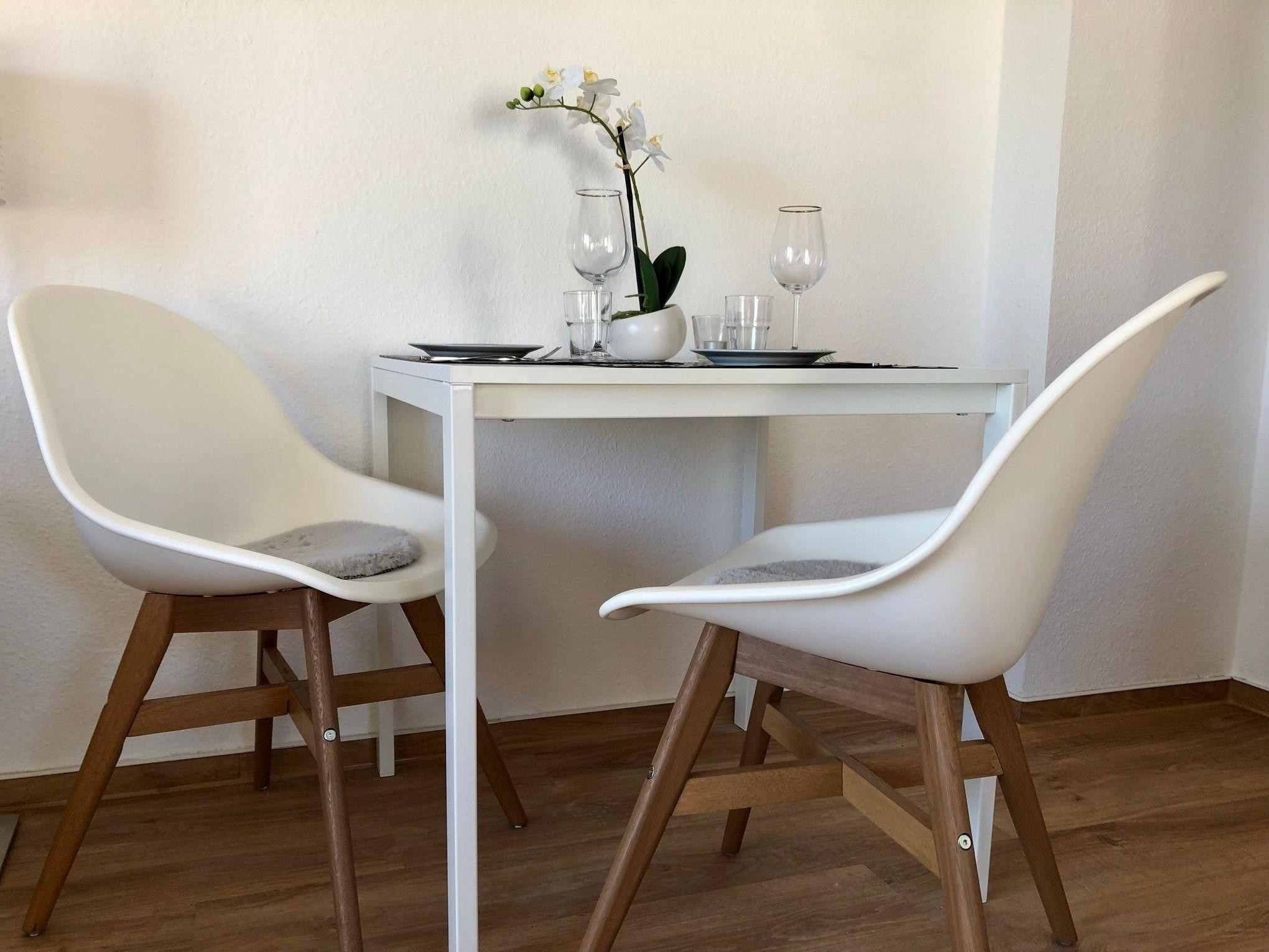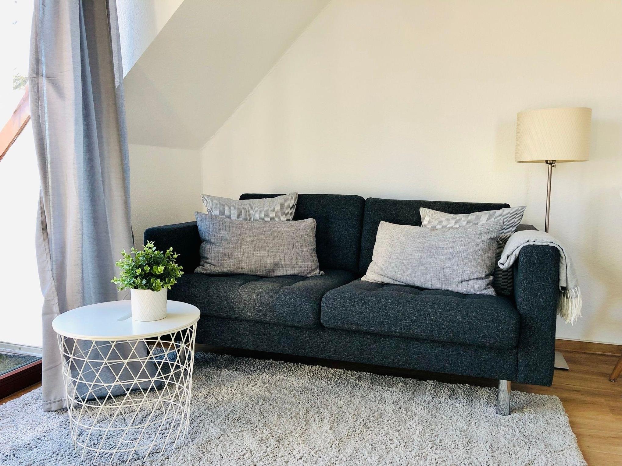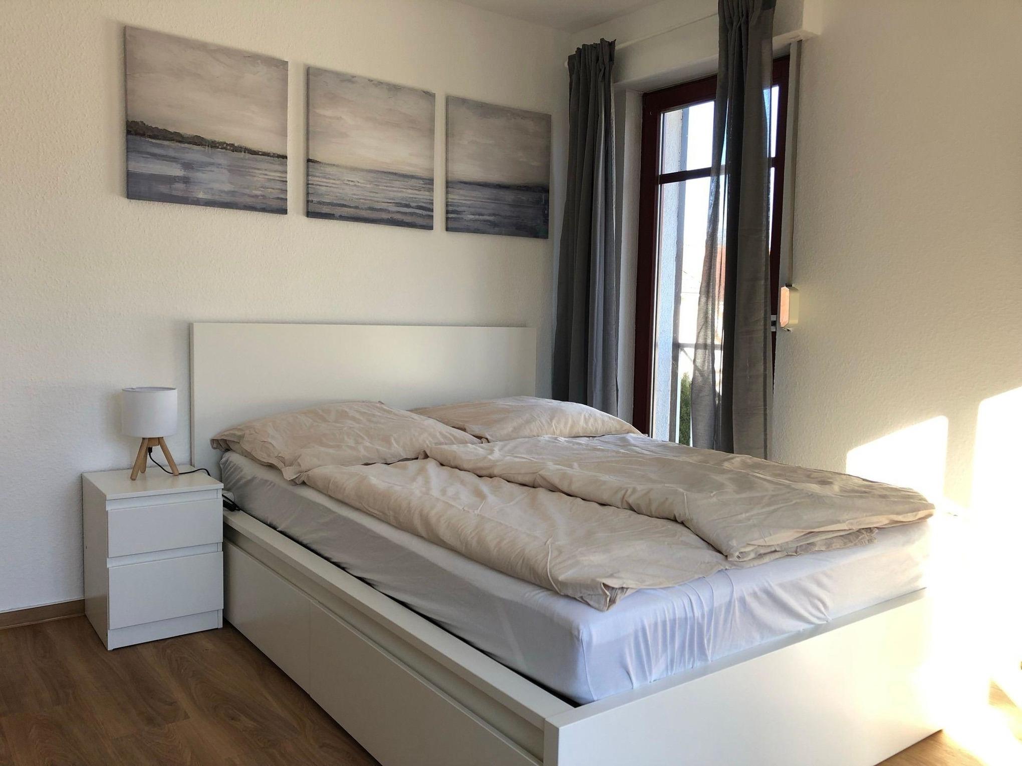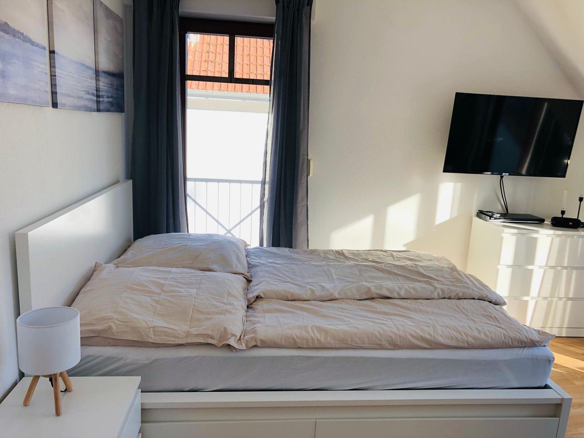 Unsere Ferienwohnung C24 "Mary Poppins" ist ein 32 qm großes Einzimmerappartement im Dachgeschoss unseres Ferienhauses mit insgesamt vier Ferienwohnungen. Die Wohnung ist im skandinavischen Stil eingerichtet. Sie ist hell und gemütlich und wurde 2022 renoviert und neu möbeliert. Das Wohn- und Schlafzimmer ist mit einem 140 cm breiten Doppelbett (eine Matratze) inklusive Inlets ausgestattet. Das Bett ist mit geräumigen Schubladen ausgestattet, die viel Stauraum bereit halten. Außerdem befinden sich in diesem Zimmer ein bequemes Sofa mit Beistelltisch, ein Esstisch mit zwei Stühlen, eine Kommode mit viel Stauraum, ein Smart-TV, ein Wäscheständer und ein paar schöne Lampen für indirekte gemüliche Beleuchtung. Eine große Fensterfront mit Tür, die den Weg auf den eigenen Balkon eröffnet, lässt viel Licht in das Wohn- und Schlafzimmer. Darüber hinaus sind alle Fenster des Wohn- und Schlafzimmers mit Rolladen ausgestattet, die abdunkeln und isolieren. Die große lichtdurchflutete Küche im Landhausstil ist neben Ofen, Kochfeld und Kühlschrank mit einer Mikrowelle, Kaffeemaschine, einem Wasserkocher und Toaster ausgestattet. Das große und helle Badezimmer verfügt über eine Dusche und hält ausreichend Abstellflächen bereit. Im Keller der Ferienwohnung befinden sich ein Grill, ein Sonnenschirm, ein Baby-Reisebett, ein Kinderhochstuhl, Sandspielzeug und ein Kinderwagen.