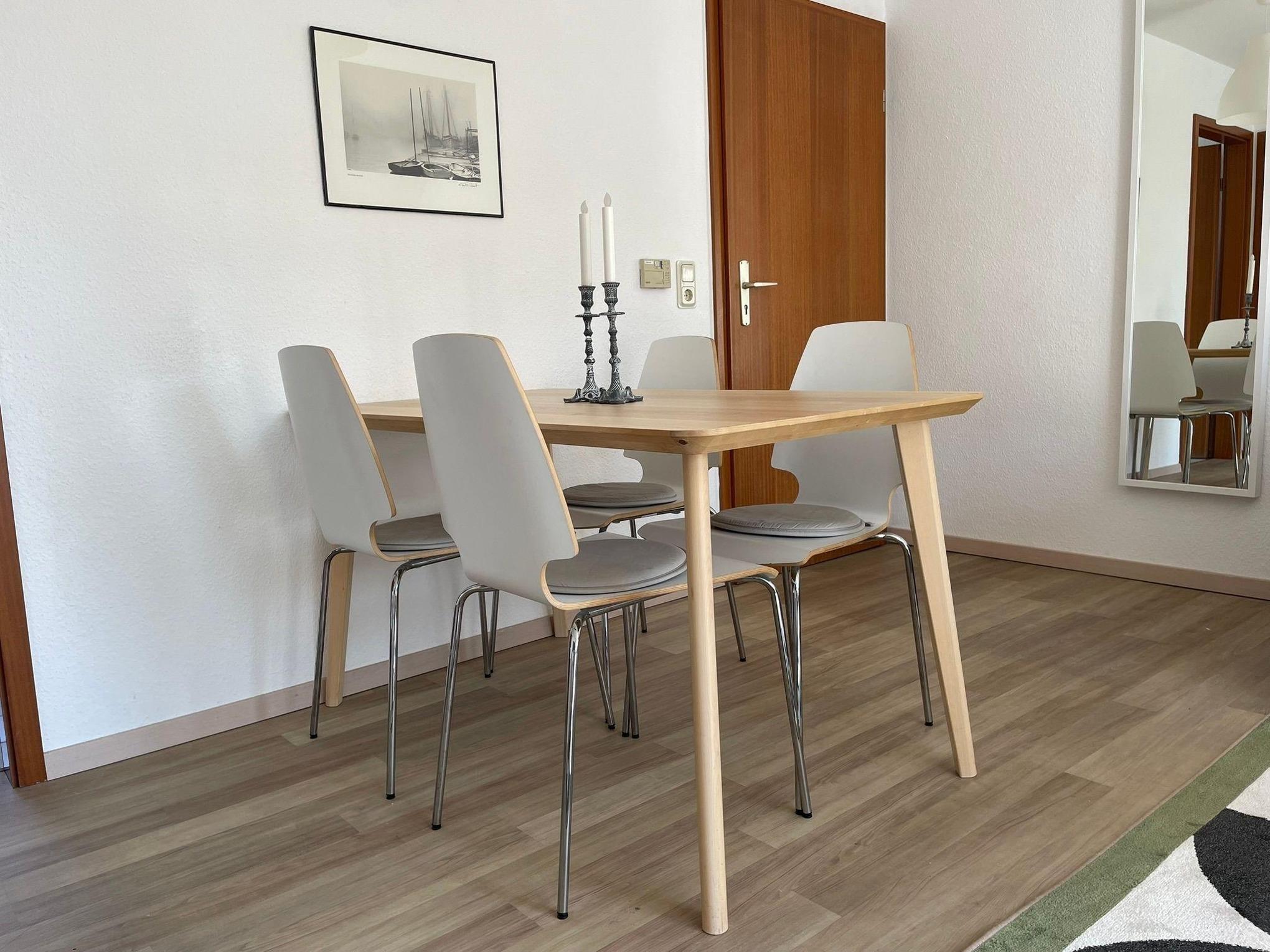 Unsere Ferienwohnung C26 "Nils Holgerson" ist ein 58 qm großes Dreizimmerappartement im Dachgeschoss unseres Ferienhauses mit insgesamt vier Ferienwohnungen. Die Wohnung ist im skandinavischen Stil eingerichtet. Sie ist hell und gemütlich und bietet Platz für bis zu sechs Personen. Das Wohnzimmer verfügt über ein bequemes Sofa mit einem Sessel und einen Beistelltisch. Im Wohnzimmer finden sich außerdem ein Esstisch mit sechs Stühlen, eine Kommode, ein Fernseher, Radio und ein paar schöne Lampen für indirekte, gemütliche Beleuchtung. Die große Fensterfront mit Tür, die den Blick in den Garten des Ferienhauses, Rügens Natur und den Weg auf den eigenen Balkon eröffnet, lässt viel Licht in das Wohnzimmer. Vom Wohnzimmer aus gelangt man durch einen kleinen Flur zu den zwei Schlafzimmern und dem Badezimmer. Das erste der zwei Schlafzimmer verfügt über eine große Fensterfront mit Tür, die das Zimmer mit Licht durchflutet und den Weg auf den zweiten Balkon der Wohnung eröffnet. Das Schlafzimmer ist mit einem 180 cm breiten Doppelbett (2 Matratzen mit je 90 cm Breite) inklusive Inlets ausgestattet. Das Zimmer verfügt neben dem Bett über einen großen Kleiderschrank und eine Kommode mit Spiegel die viel Stauraum bereit halten. Das zweite Schlafzimmer ist mit einem 90 cm breiten Etagenbett (2 Matratzen) inklusive Inlets und einem kleinen Schrank ausgestattet. Bei Belegung der Ferienwohnung mit über vier Personen, kann das Sofa im Wohnzimmer zu einem Schlafplatz für zwei weitere Personen erweitert werden (1 Matratze, Inlets vorhanden). Darüber hinaus sind alle Fenster des Wohnzimmers und der Schlafzimmer mit Rolladen ausgestattet, die abdunkeln und isolieren. Die große lichtdurchflutete Küche im Landhausstil ist neben Ofen, Kochfeld und Kühlschrank mit einer Mikrowelle, Kaffeemaschine, einem Wasserkocher und Toaster ausgestattet. Das große und helle Badezimmer verfügt über eine Dusche und hält ausreichend Abstellflächen bereit. Im Keller der Ferienwohnung befinden sich ein Grill, ein Sonnenschirm, ein Baby-Reisebett, ein Kinderhochstuhl, Sandspielzeug und ein Kinderwagen.